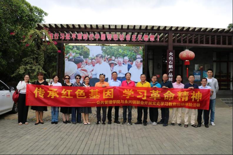 为深入学习贯彻党的十九大和习近平总书记系列重要讲话精神,庆祝中国共产党建党100周年,2021年5月28日,海南大学公共管理学院行政管理系教师党支部和学院部分教工党员前往海口市石山镇和永兴镇,校镇联动开展党史学习教育主题党日活动,参观施茶村石斛园及乡村振兴展览馆。党委书记王默忠、院长李宜钊、行政管理系教师党支部党员以及学院部分教职工党员参加了此次活动。