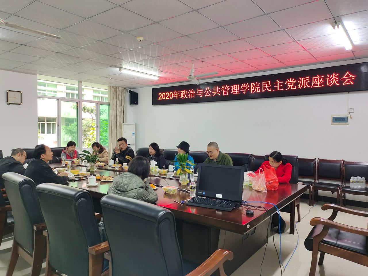 政管学院于2020年12月31日在社科楼A213组织进行民主党派座谈会,会议由院党委书记王默忠主持,海南大学统战部民主党派科科长张海韵莅临指导,学院全体民主党派成员与会讨论。