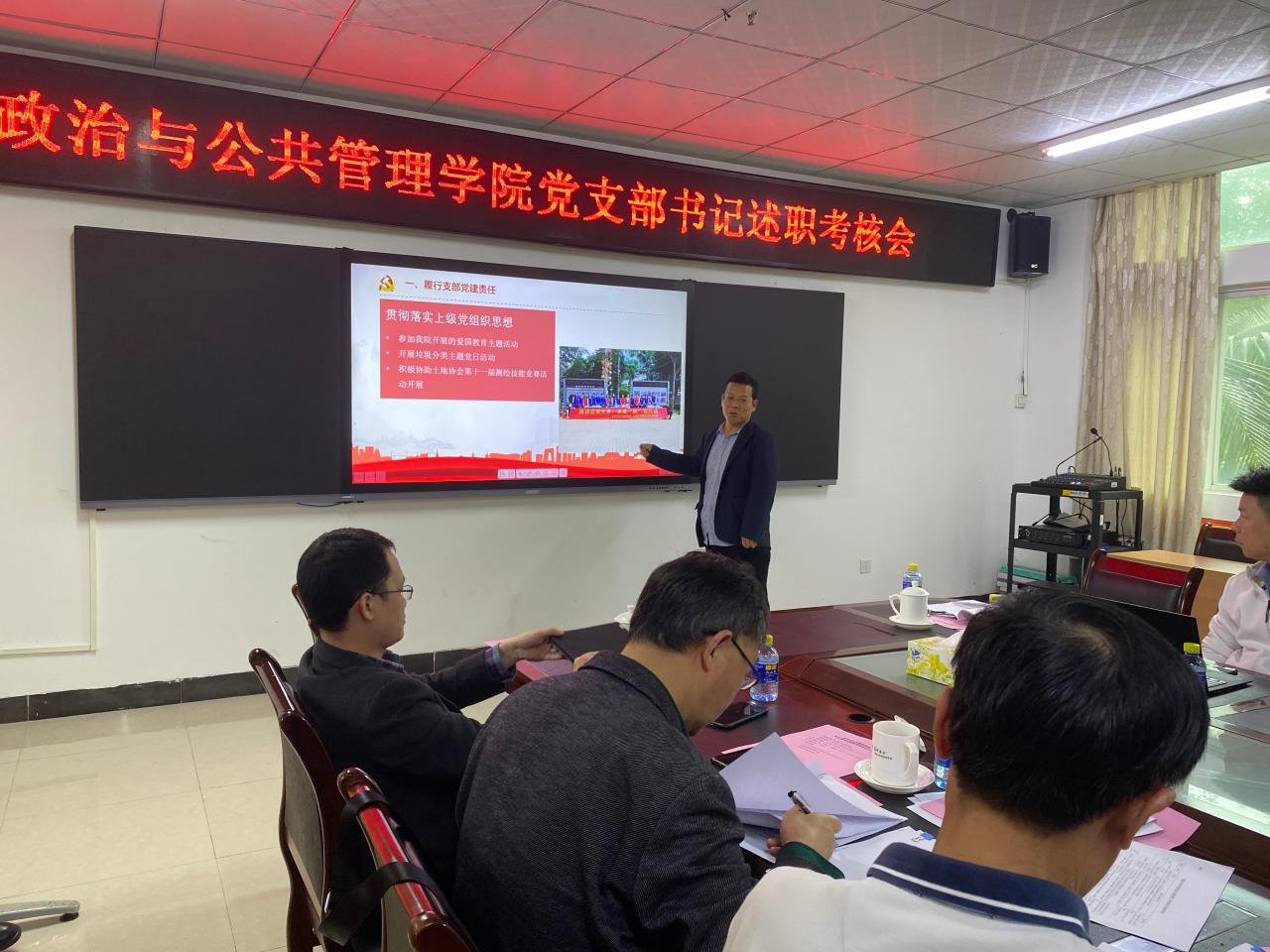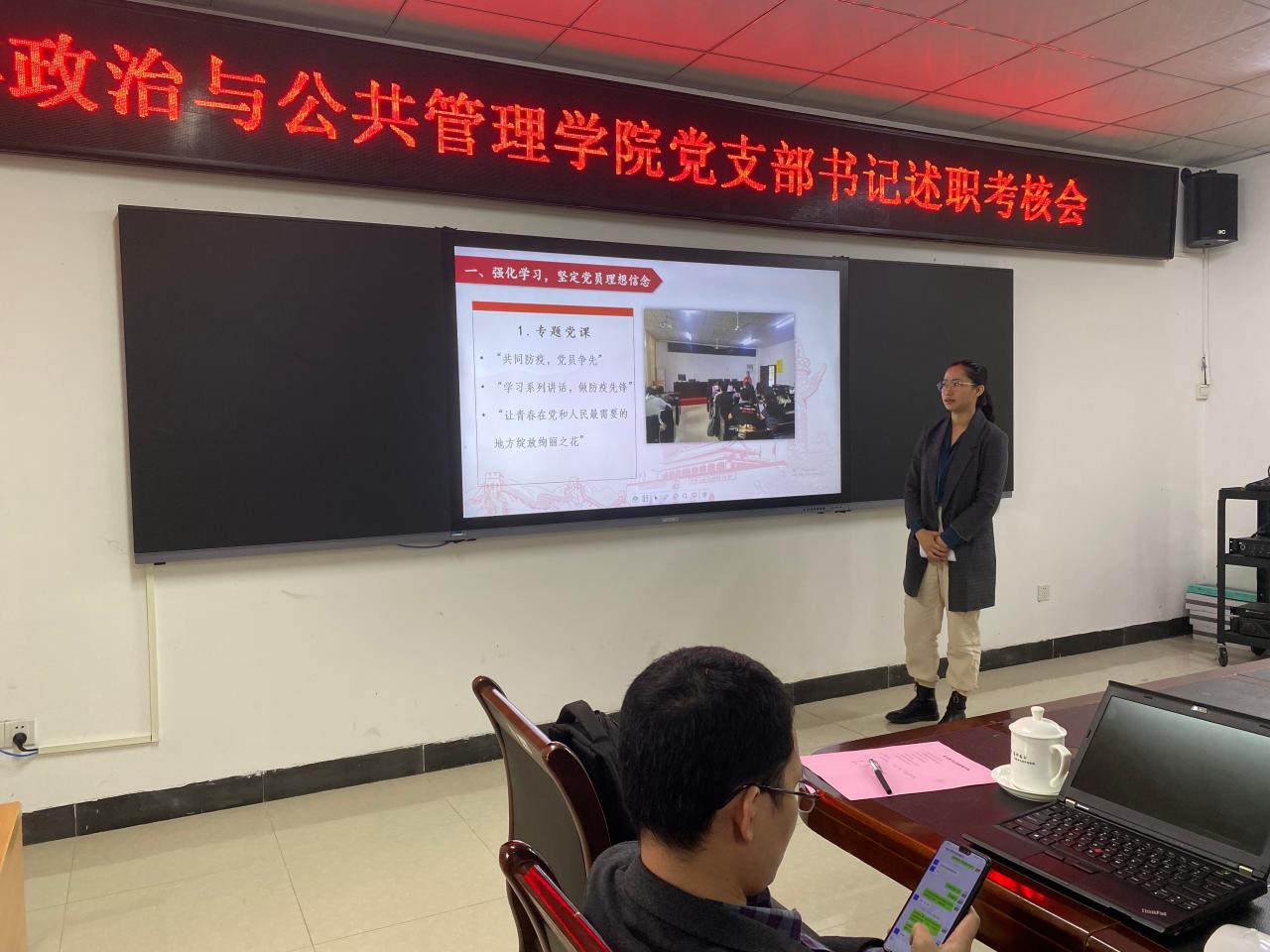 述职采取现场述职和书面述职相结合的方式进行。土地资源管理系党支部书记栾乔林、行政管理系党支部书记刘德浩、研究生党支部书记左世宝等7名支部书记,着重围绕深入学习贯彻习近平新时代中国特色社会主义思想、党的十九大及十九届四中、五中全会精神情况,并介绍了2020年党支部工作开展情况与成效,指出了存在的问题与未来整改计划。