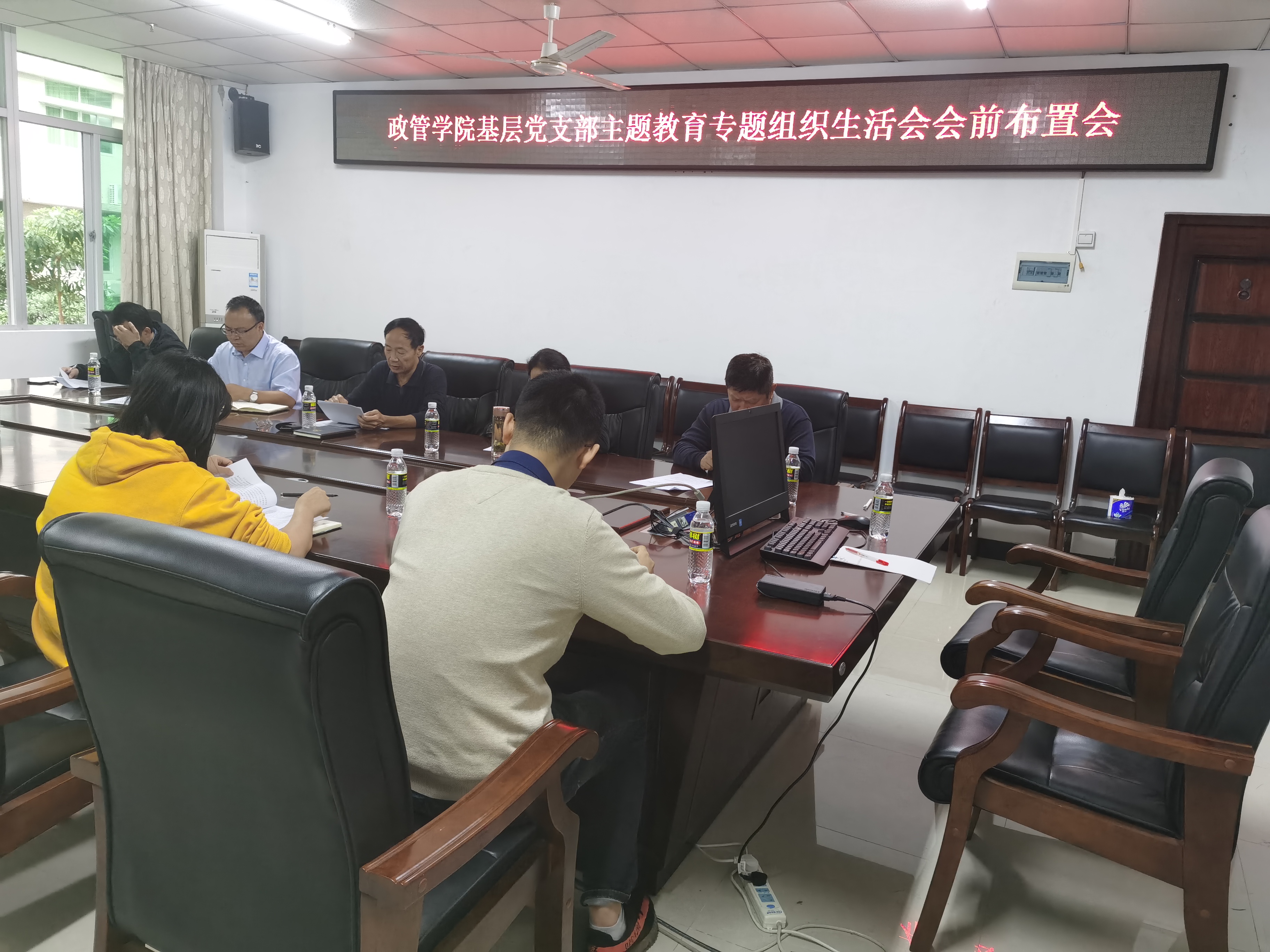 11月28日下午,政管学院基层党支部主题教育专题组织生活会会前布置会在社科楼A213会议室召开,政管学院各党支部书记出席本次会议。会议由党委书记王默忠主持。