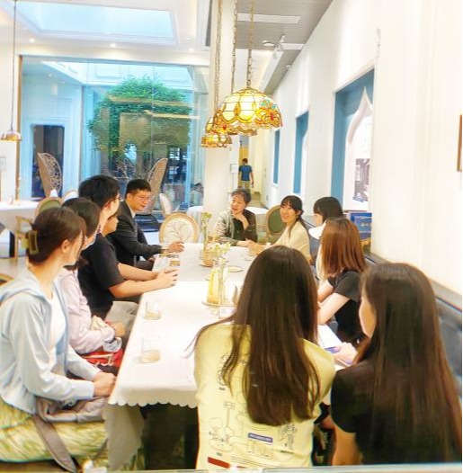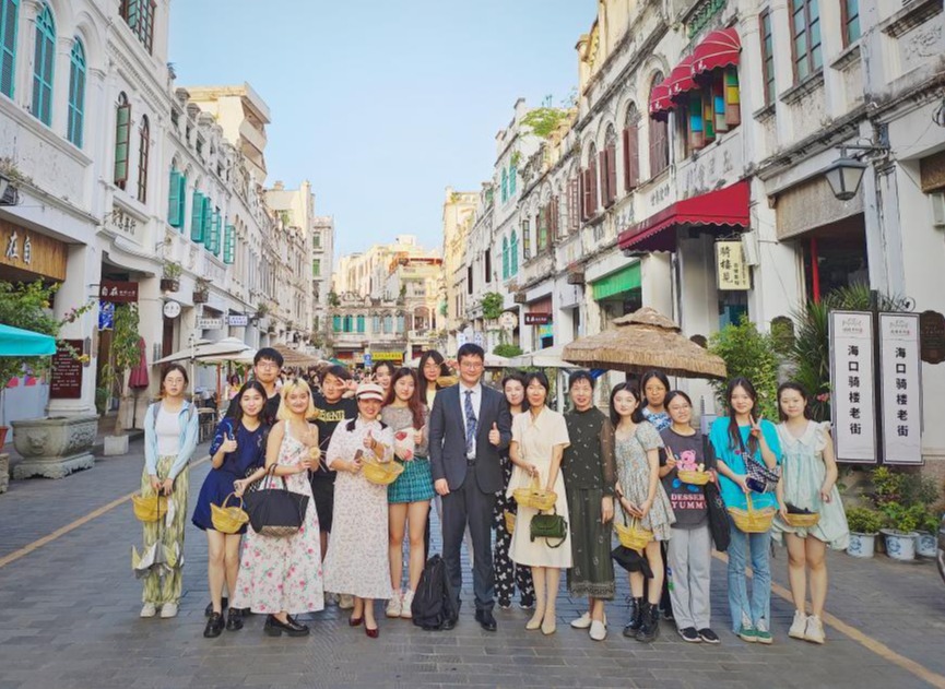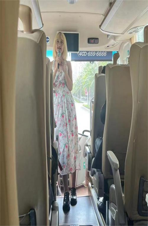 活动伊始,在参观考察的大巴车上,同学们很自然地进行轻松愉快的交流。中爱合作项目的学生热情地介绍海南大学和中爱合作会展经济与管理项目,描绘新南门的晚霞,推介自己喜爱的海南特色美食与旅游项目,甚至省钱小攻略等。澳科大的学生则分享了他们对海口的感受,介绍了澳门的文化和澳科大的办学特色,以及与境内教育的差异等。很快,参加活动的小伙伴们就在线下和线上熟络起来。