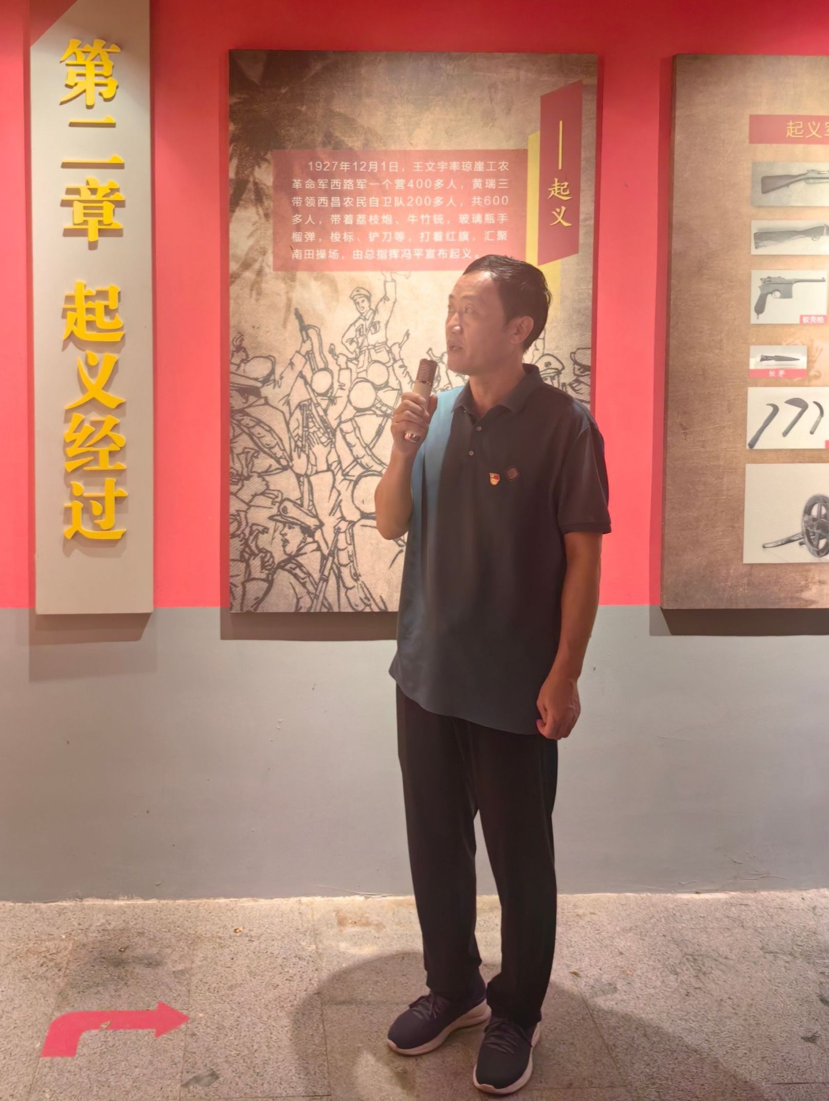 11月1日上午,支部全体党员首先前往南田起义红色革命教育基地开展主题党日学习活动。在起义广场的冯平塑像前,支部党员在侯佩旭书记的带领下,重温了入党誓词;在纪念馆里,全体党员观看了冯平同志发动南田起义、创建尖石岭根据地的英雄事迹,重温起义创造的"四个第一"历史功绩——首次打出“工农革命军”旗帜、建立区级苏维埃政权、完整组建农民自卫队等革命机构、开展琼崖持续最久的6个月暴动。通过实地参观荔枝炮、红缨枪等革命文物,深入感悟1927年12月500余名起义军攻克反动据点、开辟革命根据地的斗争精神。在红色书吧,大家了解到现在的南田村已通过"红色文化+文旅融合"模式,发展红色旅游,为游客提供研学交流场所,带动了村民发展旅游产业,促进了乡村振兴。