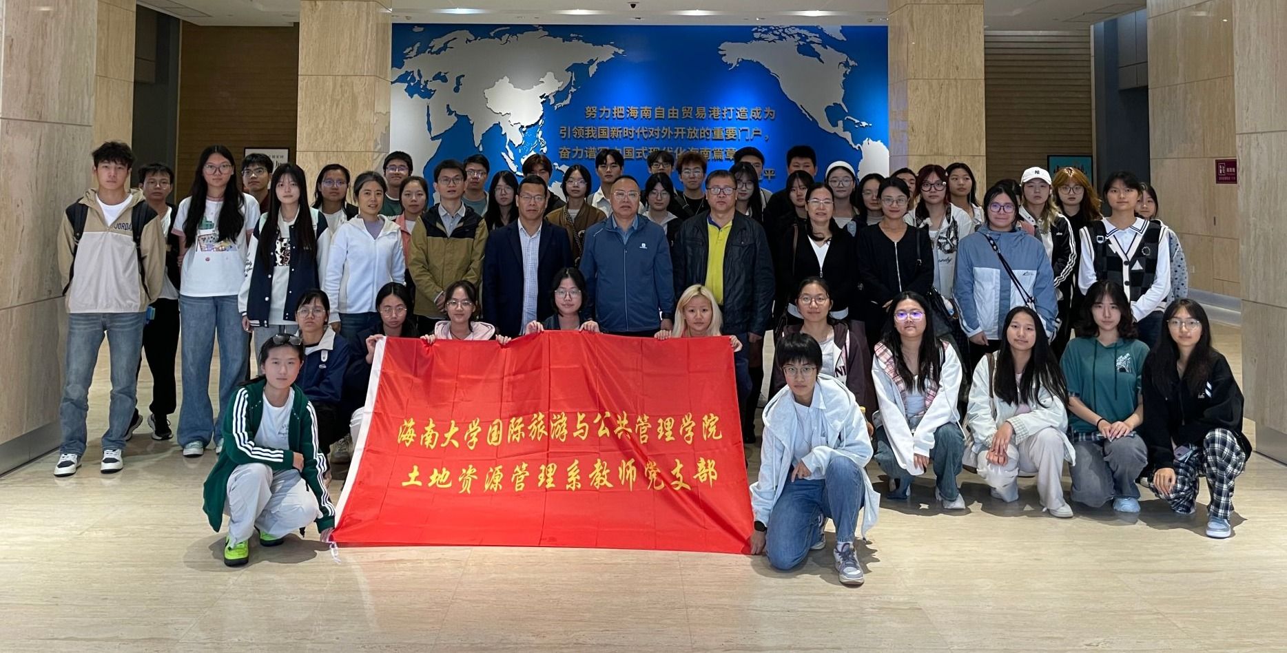 为进一步加强土地资源管理系师生“党建+专业实践”深度融合,帮助学生快速建立土地资源管理专业认知,2025年11月4日下午,我院土地管理系教师党支部赴海南省规划展览馆开展主题党日活动。学院副院长黄朝明、土地资源管理系教师党支部书记栾乔林、系主任宋晓丽、支部党员及今朝书院土地管理系学生入党积极分子40余人参加活动。