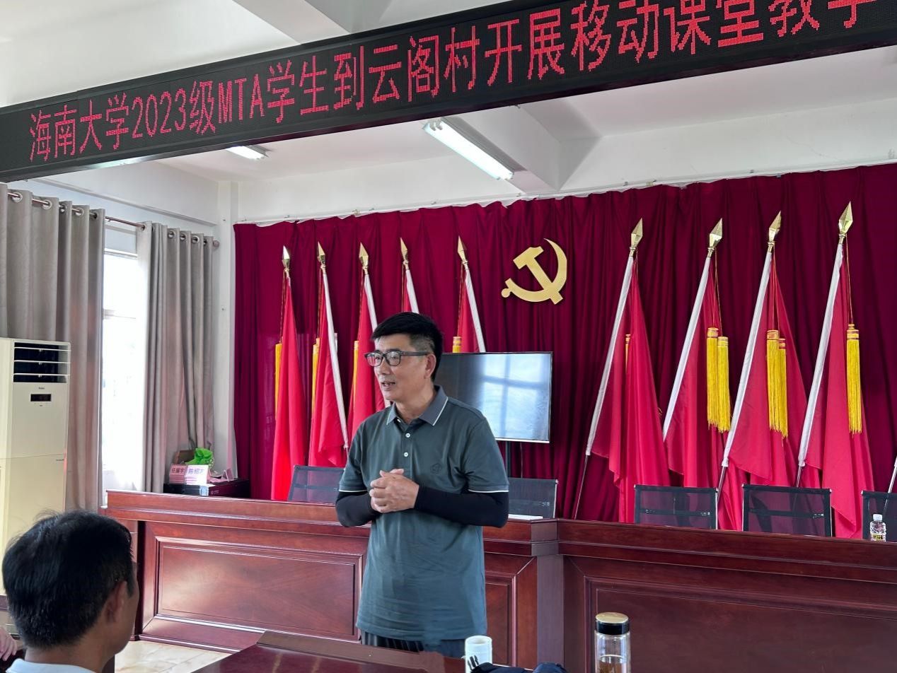 为进一步推进MTA教学改革创新,促进课程教学与实践的融合,我院何彪教授于2024年6月14日带领2023级MTA全日制班的学生们走进海口云阁村,开展了一次丰富的移动课堂教学活动。海口云阁村第一书记陈珊等村干部热情接待了我院师生。