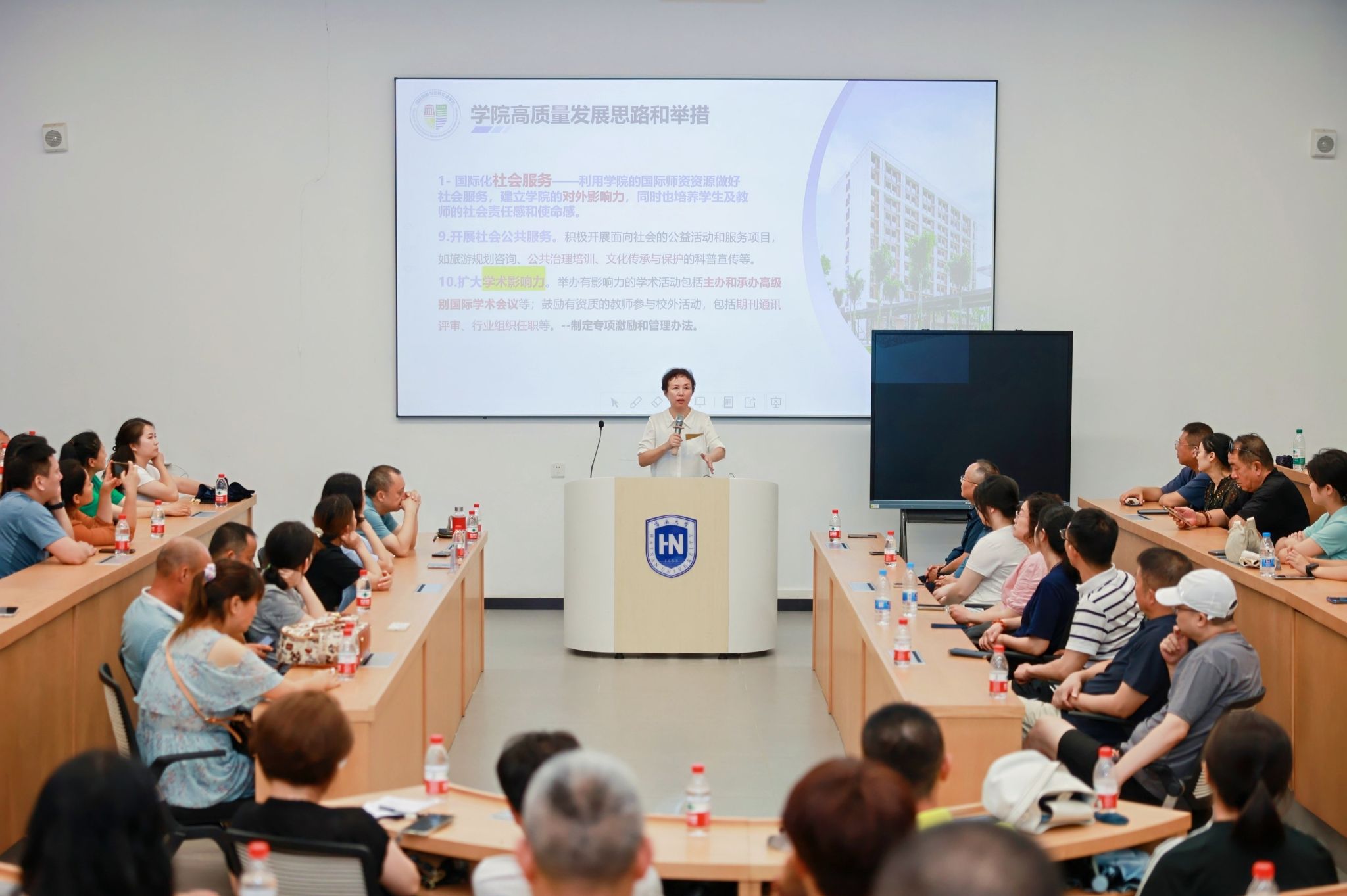 2024年8月31日下午,国际旅游与公共管理学院2024级新生家长会在观澜湖校区3A103教室成功举办。本次见面会旨在搭建家校沟通的桥梁,增进家长对学院的信任与理解,共同为新生们的大学之旅保驾护航。学院院长王琳、党委书记郭强、党委副书记欧少红出席会议,2024级新生及家长参加会议。