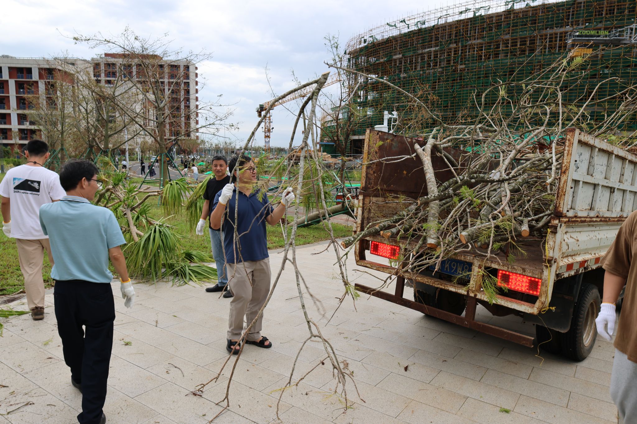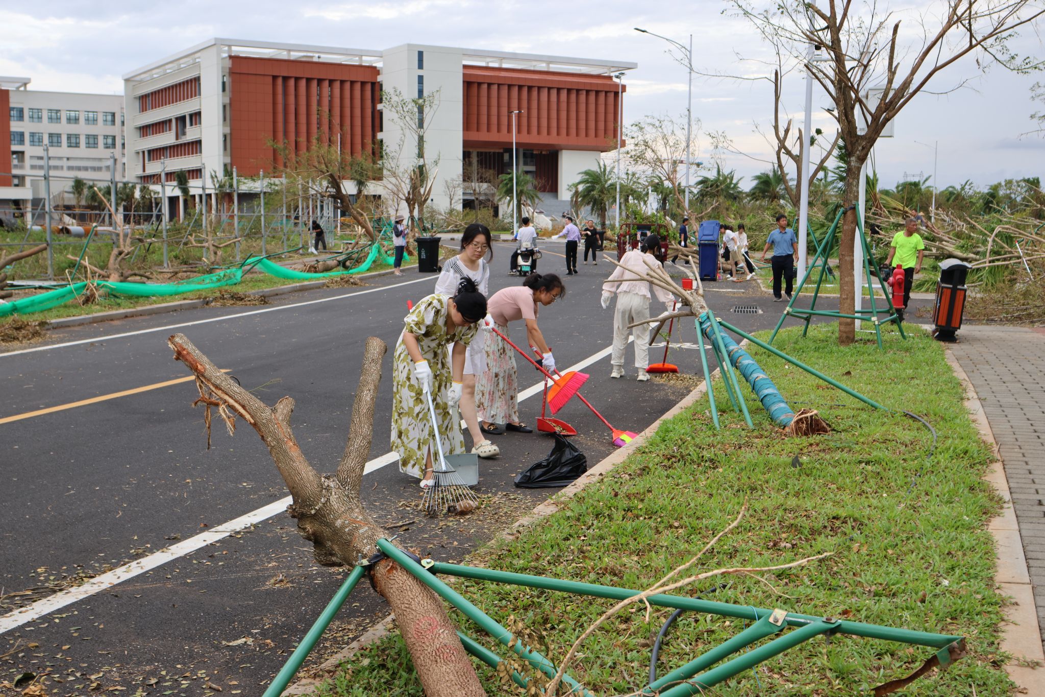 9月9日下午,在第40个教师节来临之际,william威廉中文官网各支部党员教师放下粉笔,拿起扫帚,全力以赴投入超强台风“摩羯”灾后恢复重建工作中,清理校园积水、淤泥、垃圾及倒塌树木,确保校园道路畅通,保障海南大学观澜湖校区正常教学生活秩序。