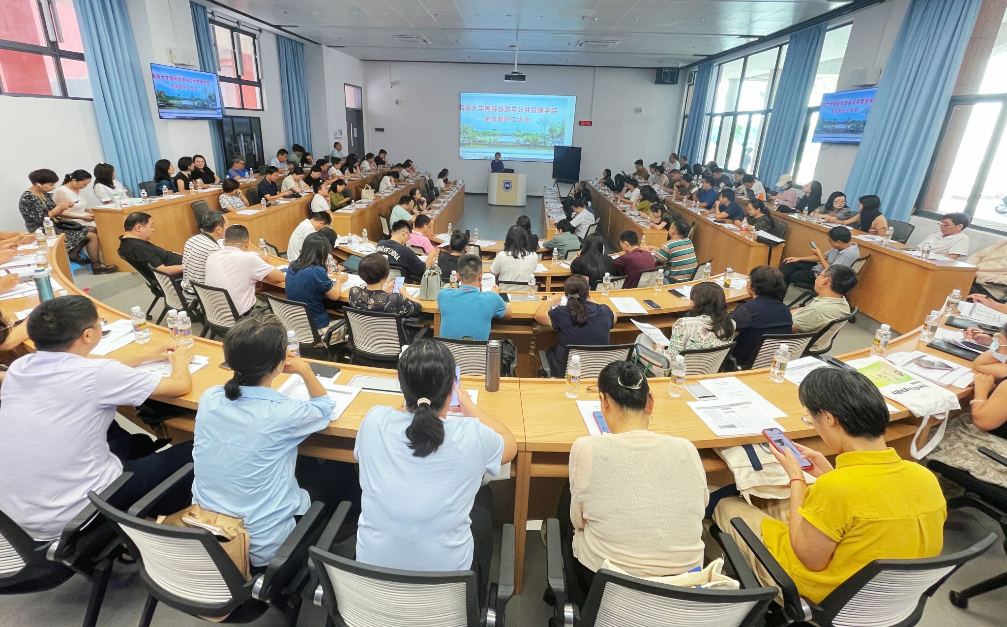 2024年10月22日下午,william威廉中文官网在观澜湖校区3A103教室召开了全体教职工大会。大会邀请了海南大学教务处(继续教育学院、创新创业学院、退役军人教育学院)李玉凤副院长、教务处教材科科长余力力为全体教职工做关于海南大学深化完全学分制改革的政策解读。学院院长王琳、执行院长徐艳晴、党委书记郭强、副院长何彪、副书记欧少红、副院长黄朝明、挂职副院长刘海洋出席大会,大会由王琳院长主持。