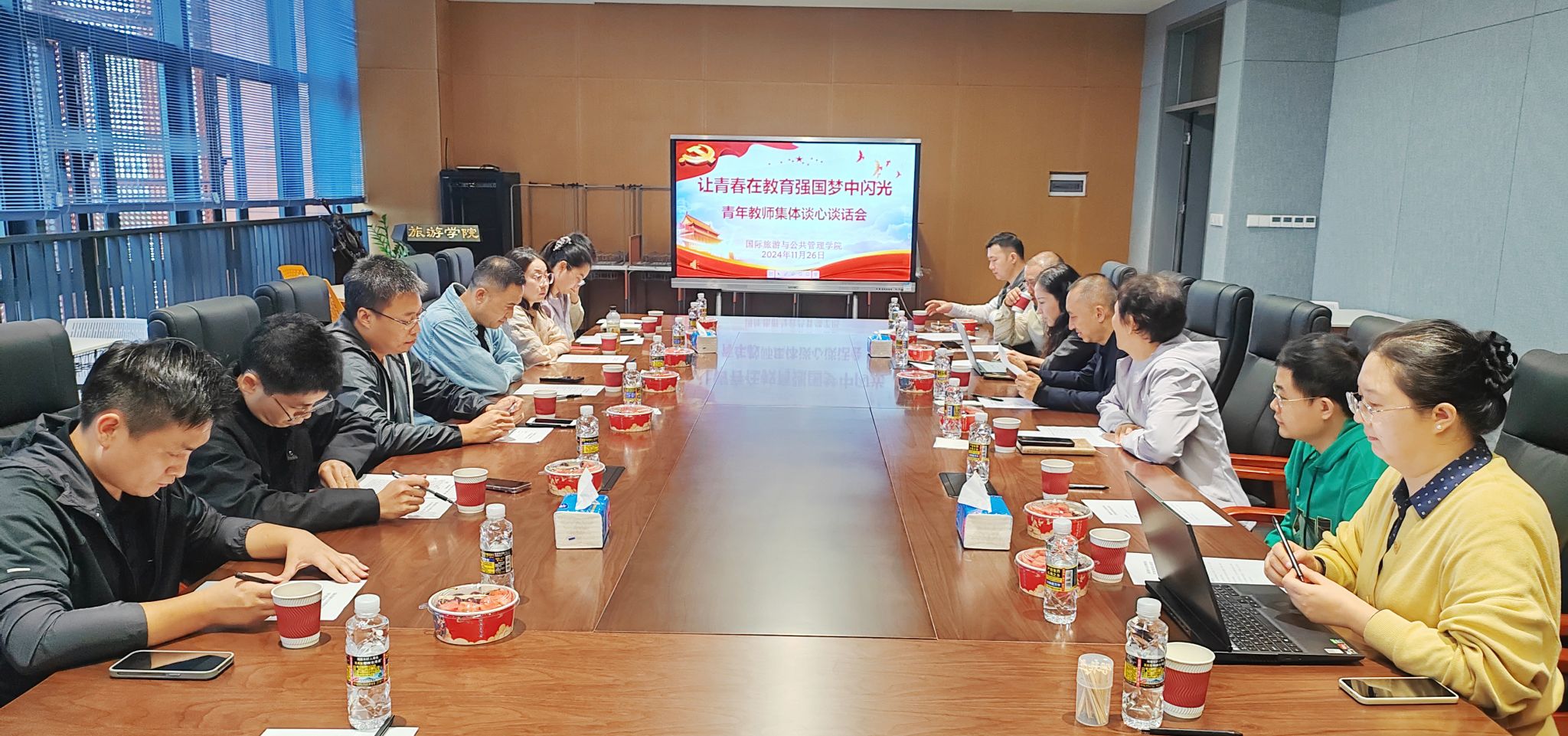 为进一步深入学习贯彻党的二十届三中全会精神,深入贯彻习近平总书记关于建设教育强国的重要论述,发挥好学院领导联系青年教师的桥梁和纽带作用,促进青年教师成长成才,11月26日下午,学院召开“让青春在教育强国梦中闪光”青年教师座谈会。院长王琳、执行院长徐艳晴、党委书记郭强与11名青年教师开展集体谈心谈话。