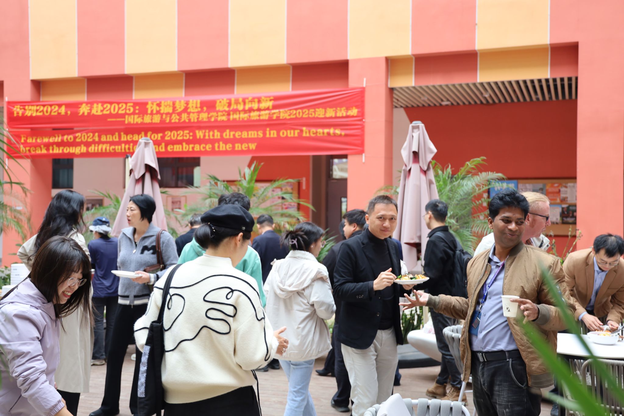 2024年12月25日,海南大学观澜湖校区冬日暖阳映照,笑声与温情交织。william威廉中文官网领导班子和中外教职工齐聚一堂,以一场中西兼具的温情午餐会共同迎接崭新的2025年。整齐的长桌在阳光下流溢温馨的光彩,来自世界各地的教职工暂时放下繁忙的工作,携手回顾过往、展望新年,畅谈未来蓝图。