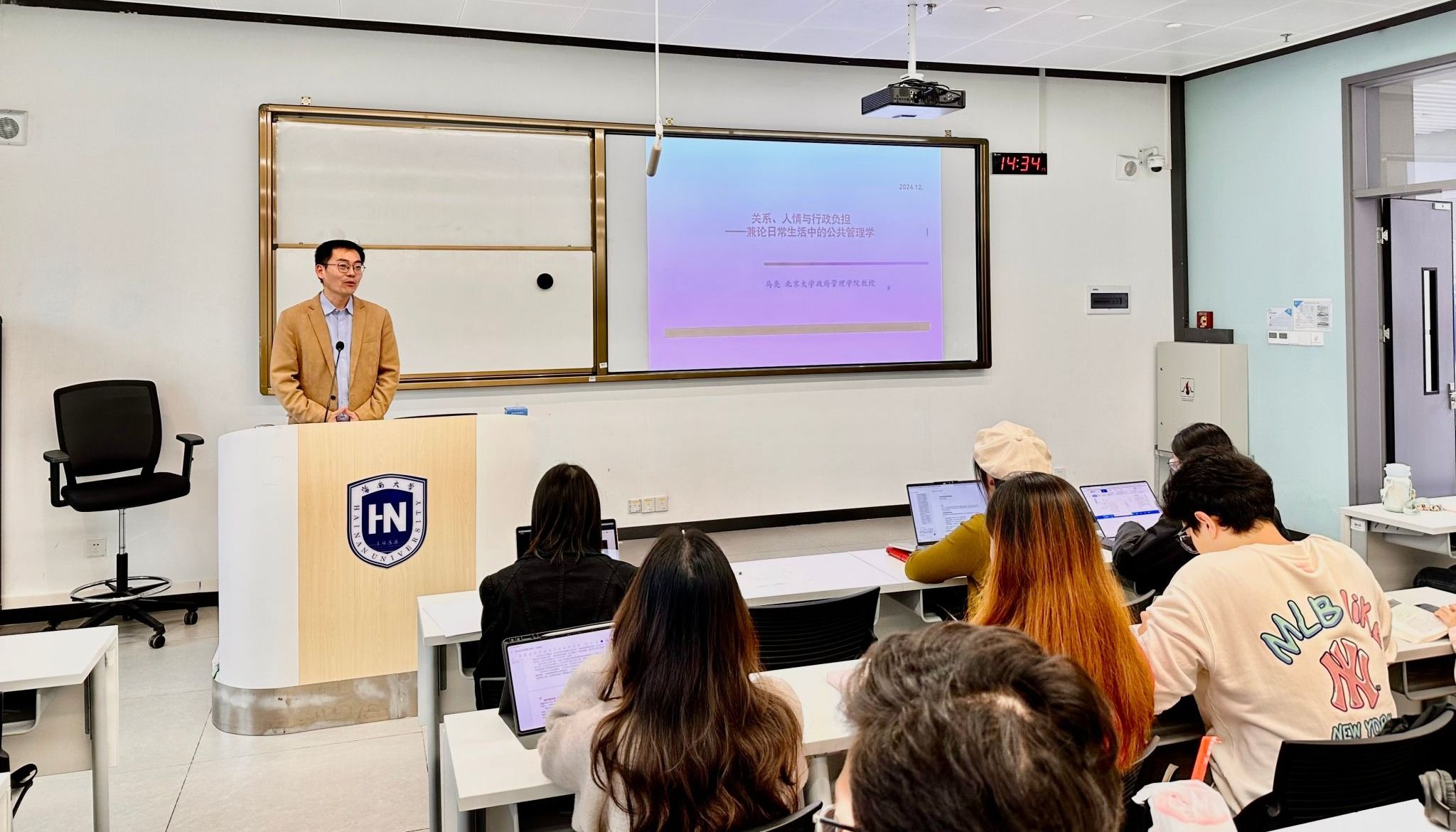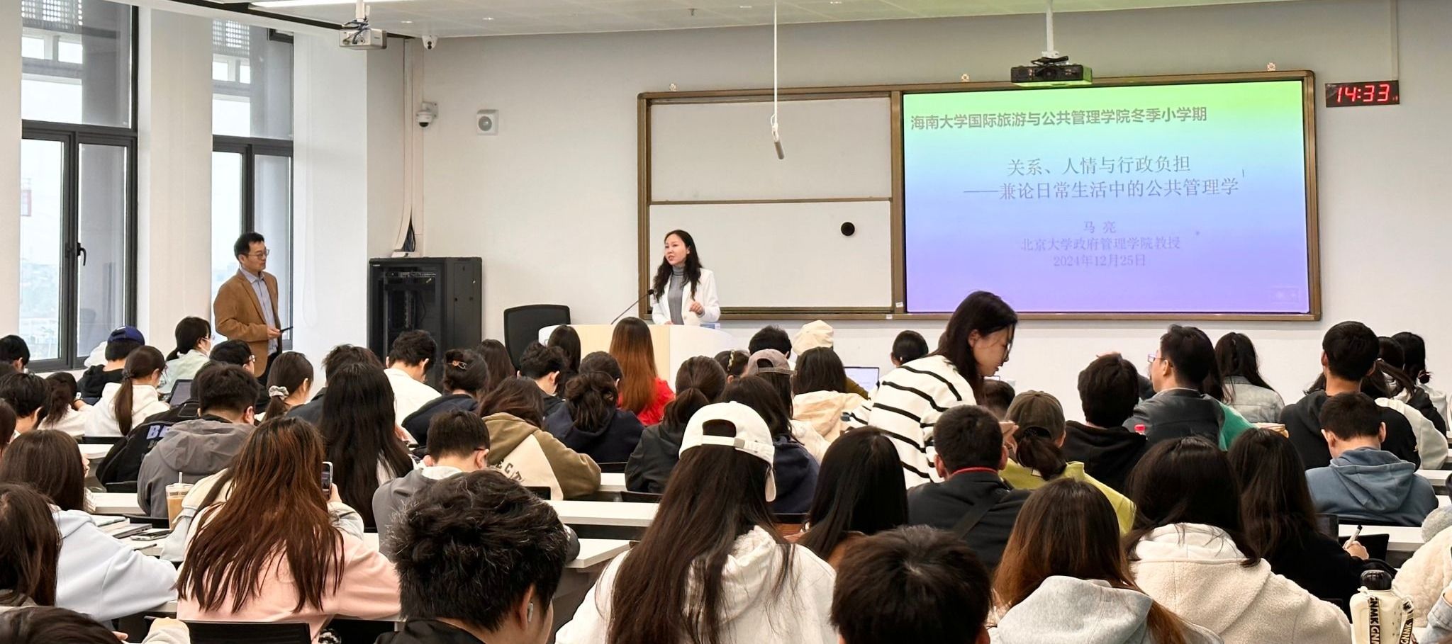 2025年12月25日,北京大学政府管理学院马亮教授应邀为我院学子作题为《关系、人情与行政负担——兼论日常生活中的公共管理学》的专题报告。报告会在海南大学观澜湖校区3-B301举行,由学院执行院长徐艳晴教授主持,2022级、2023级行政管理本科生以及2023级、2024级研究生共同参加了本次讲座。