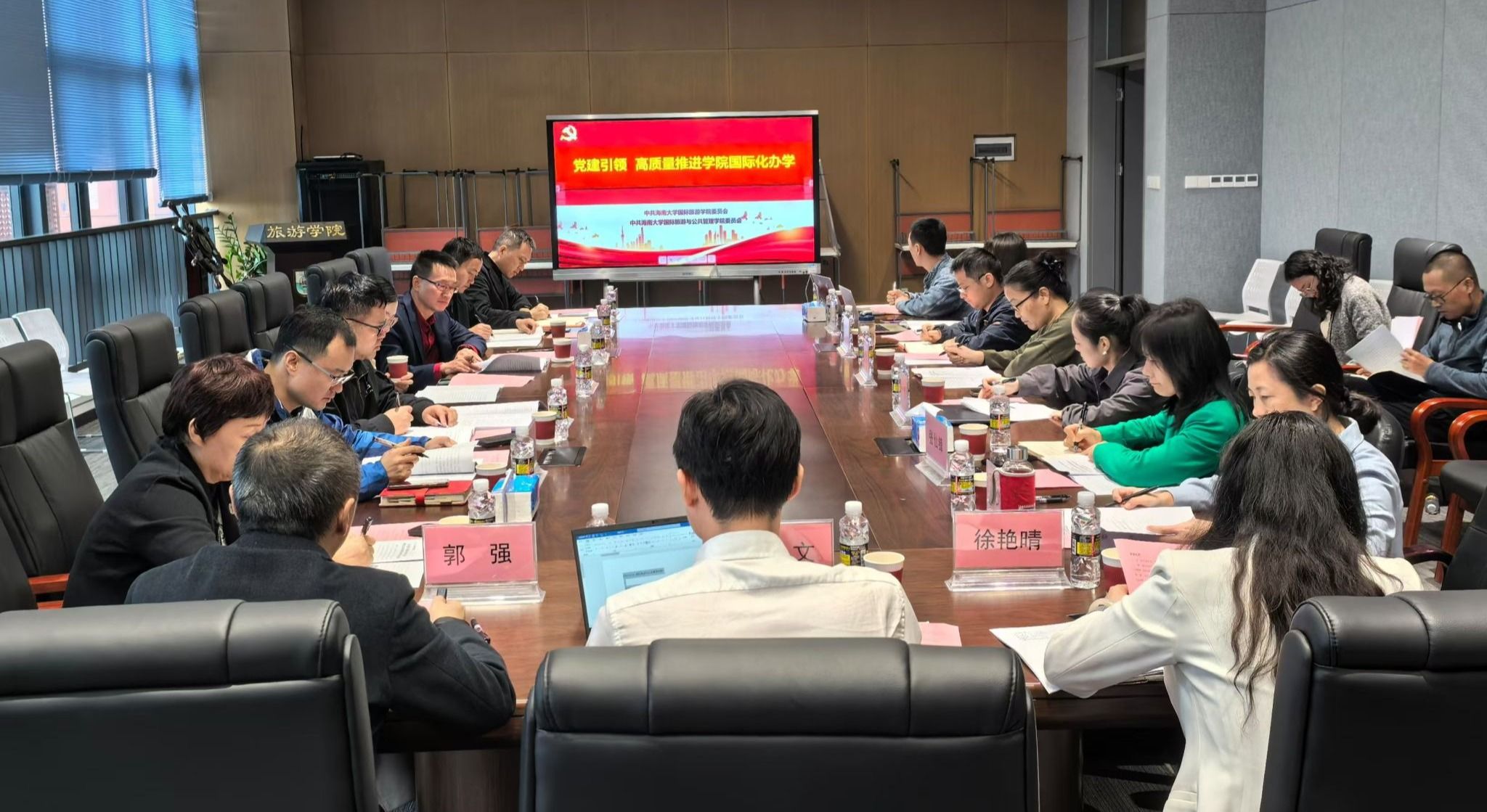 本次学习会以“坚定不移全面从严治党不放松,一体化推进党建与事业高质量发展”为主题,集中学习了习近平总书记在听取海南省委和省政府工作汇报时的重要讲话精神、第二十八次全国高校党的建设工作会议精神等相关内容。会议指出要深刻认识高校党建工作的新使命新挑战新要求,牢牢把握教育的政治属性、人民属性、战略属性,以高质量党建引领高等教育高质量发展,回答好“强国建设、高校何为”的时代命题。坚决贯彻落实习近平总书记“着力构建具有海南特色和优势的现代化产业体系 ”的重要要求,加快促进学科融合发展,促进科技创新和产业创新深度融合,统筹推进教育科技人才体制机制改革,构建更加开放的引才机制,提升旅游业国际化水平,扛起加快建设海南自贸港的使命担当。