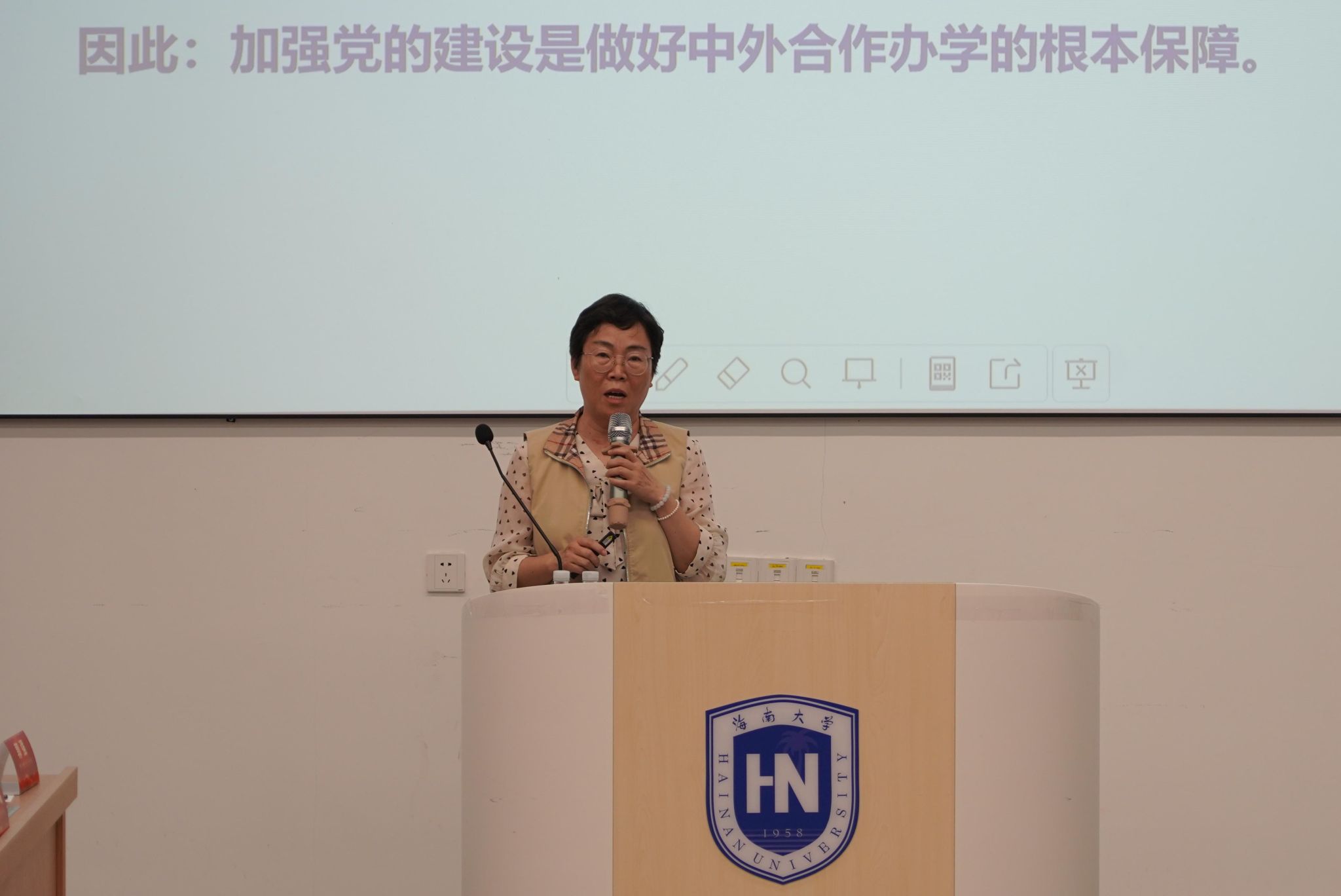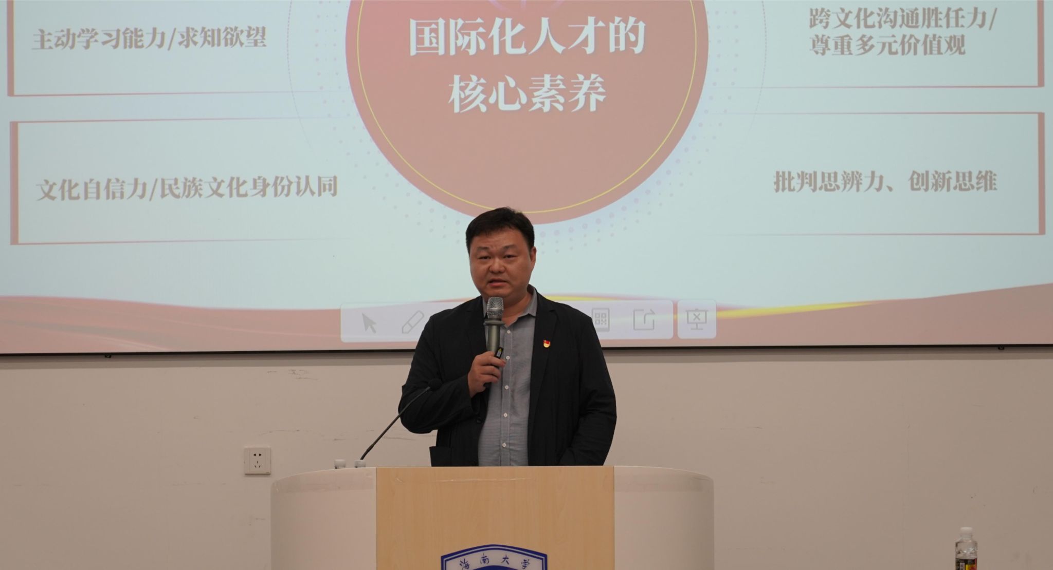 国际合作交流处处长刘亮以“党建引领 赋能学校国际化人才培养质量提升”为题,围绕学校“1443”战略,从做好党建引领顶层设计,规范管理加强外事工作风险防范;引进世界优质教育资源,积极探索与国际接轨的人才培养方式;汇聚外籍人才资源推动国际化人才培养;深化培养模式创新,提升学生国际竞争力和胜任力;推进“留学海大”品牌建设等方面,为与会人员介绍了学校国际化人才培养质量提升的举措和行动计划。