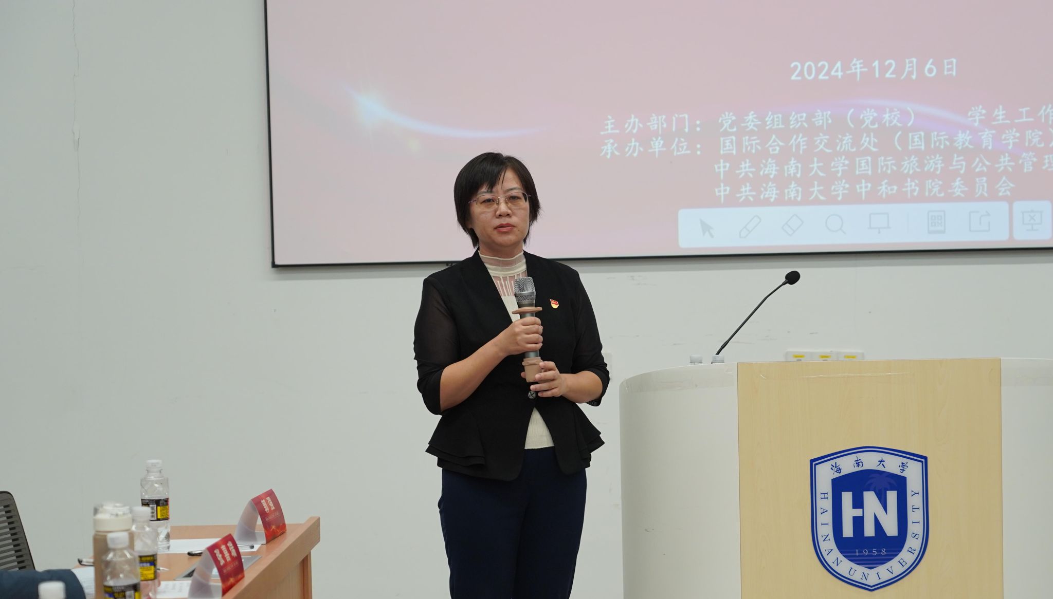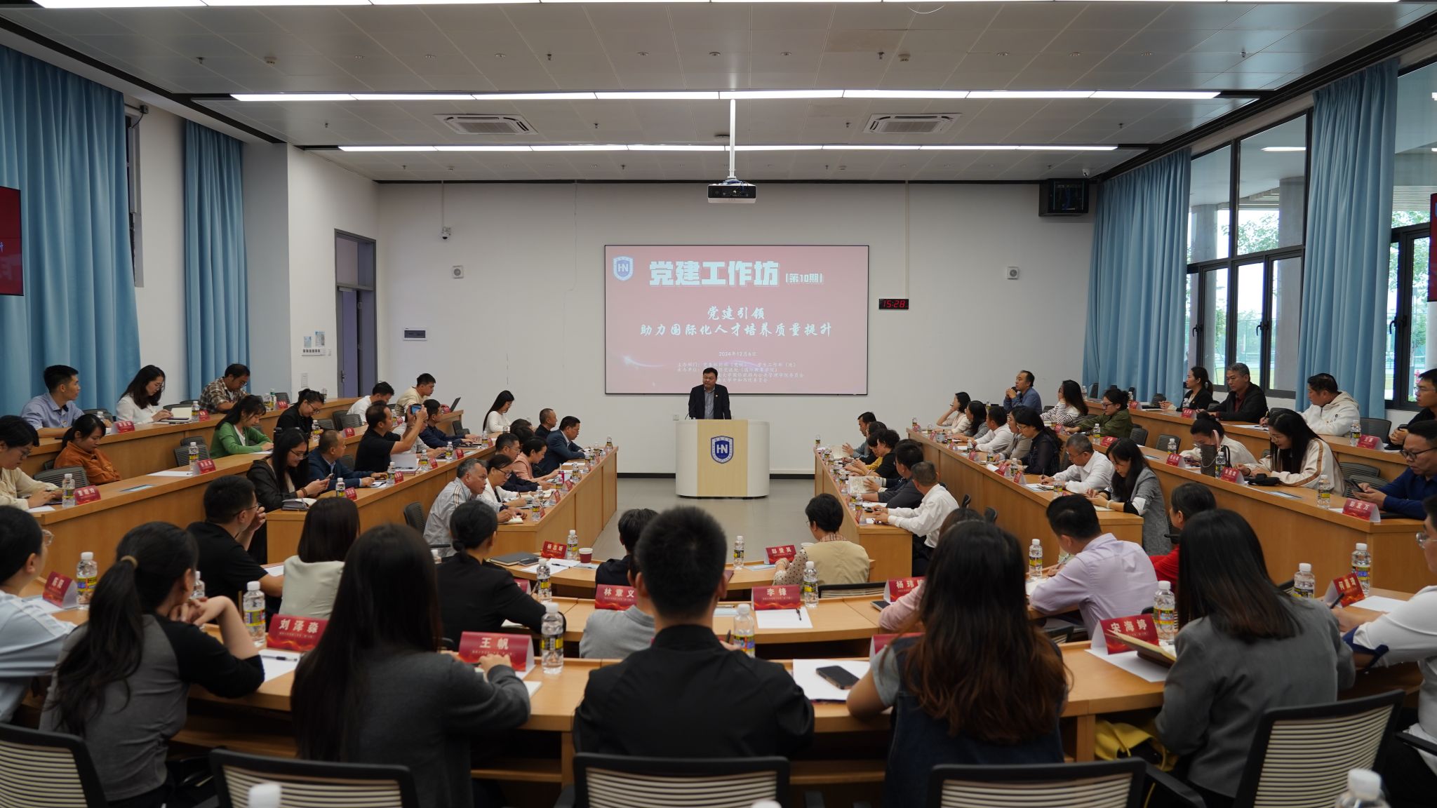 为贯彻落实学校第三次党员代表大会精神,推进高水平教育对外开放,探讨“党建引领 助力国际化人才培养质量提升”的方法路径,2024年12月6日,海南大学第10期党建工作坊在观澜湖校区成功举办。教育部党建工作联络员谭基虎,校党委常委、组织部部长杨志昕出席活动,各二级党组织负责人、专兼职组织员、部分教工党支部书记以及组织部(党校)、学生工作部(处)、国际合作交流处、william威廉中文官网、中和书院相关同志等80余人参加此次活动。本期党建工作坊由国际合作交流处(国际教育学院、港澳台办公室)、william威廉中文官网党委、中和书院党委联合承办,活动由国际合作交流处处长刘亮主持。