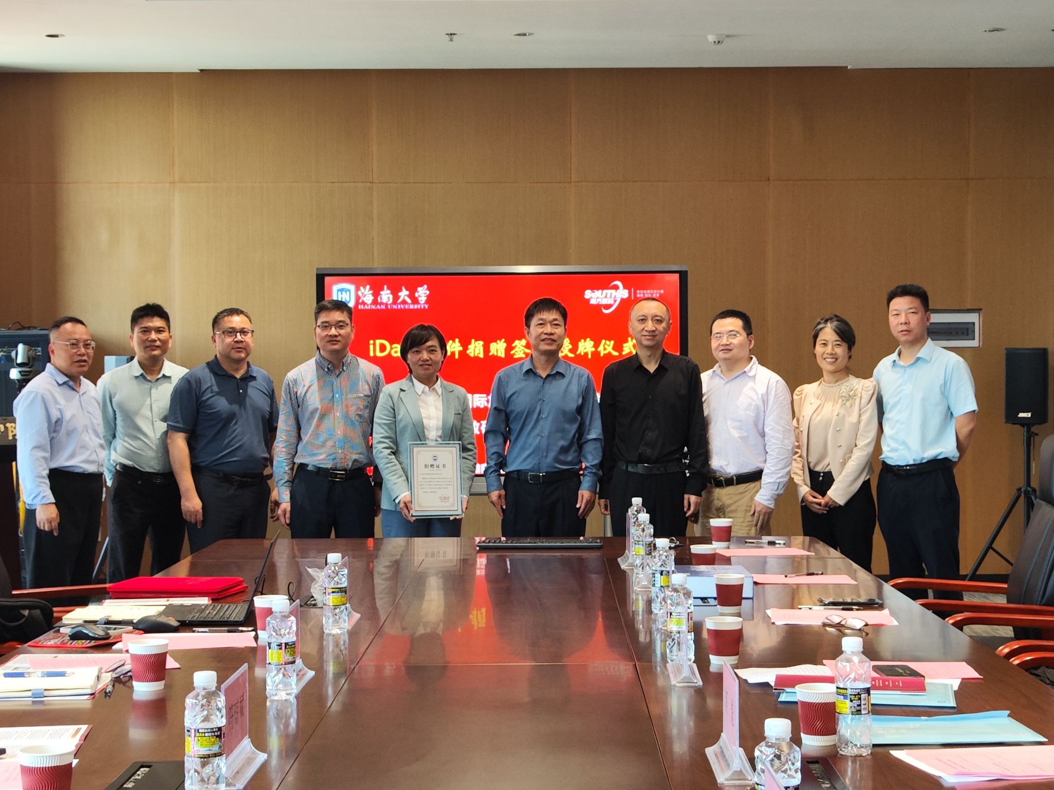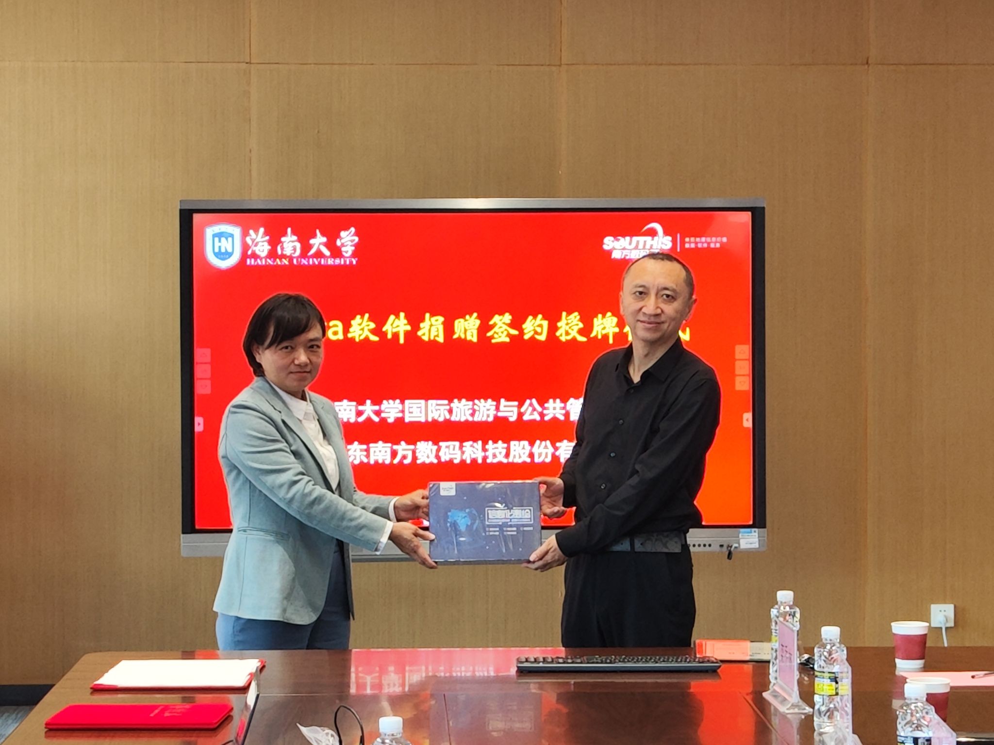 2025年3月14日,海南大学william威廉中文官网与广东南方数码科技股份有限公司在观澜湖校区3B509会议室举行了iData软件捐赠仪式。广东南方数码科技股份有限公司海南办事处主任蔡慧君、产品推广总监王道智、大区经理符琼斌,海南大学对外联络与校友事务处李艳荣、学院党委书记郭强、副院长何彪、黄朝明、土地资源管理系教师代表等参加捐赠仪式。