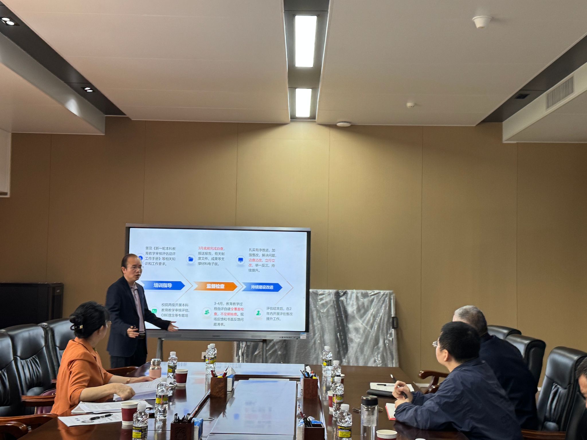 教务处副处长张德生就本科教育教学审核评估“以评促建”实施方案作详细解读。他指出,学院要做好当前关键时期本科教育教学审核评估准备,一体化开展评建改工作,夯实学院责任,将评建工作融于日常教育教学工作,高质量完成自评自建工作。