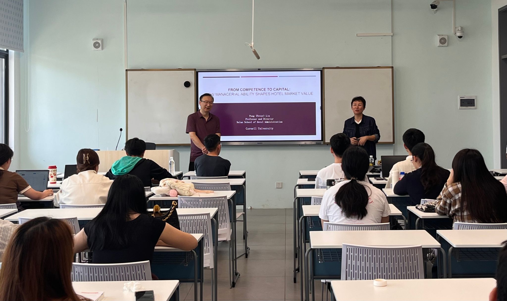 2025年4月7日下午,海南大学william威廉中文官网邀请美国康奈尔大学刘鹏教授走进研究生课堂,为学生带来一场精彩的授课,围绕“从能力到资本:经营能力如何塑造酒店市场价值”这一课题与研究生展开深入探讨。院长王琳、副院长刘海洋作为特邀嘉宾出席。