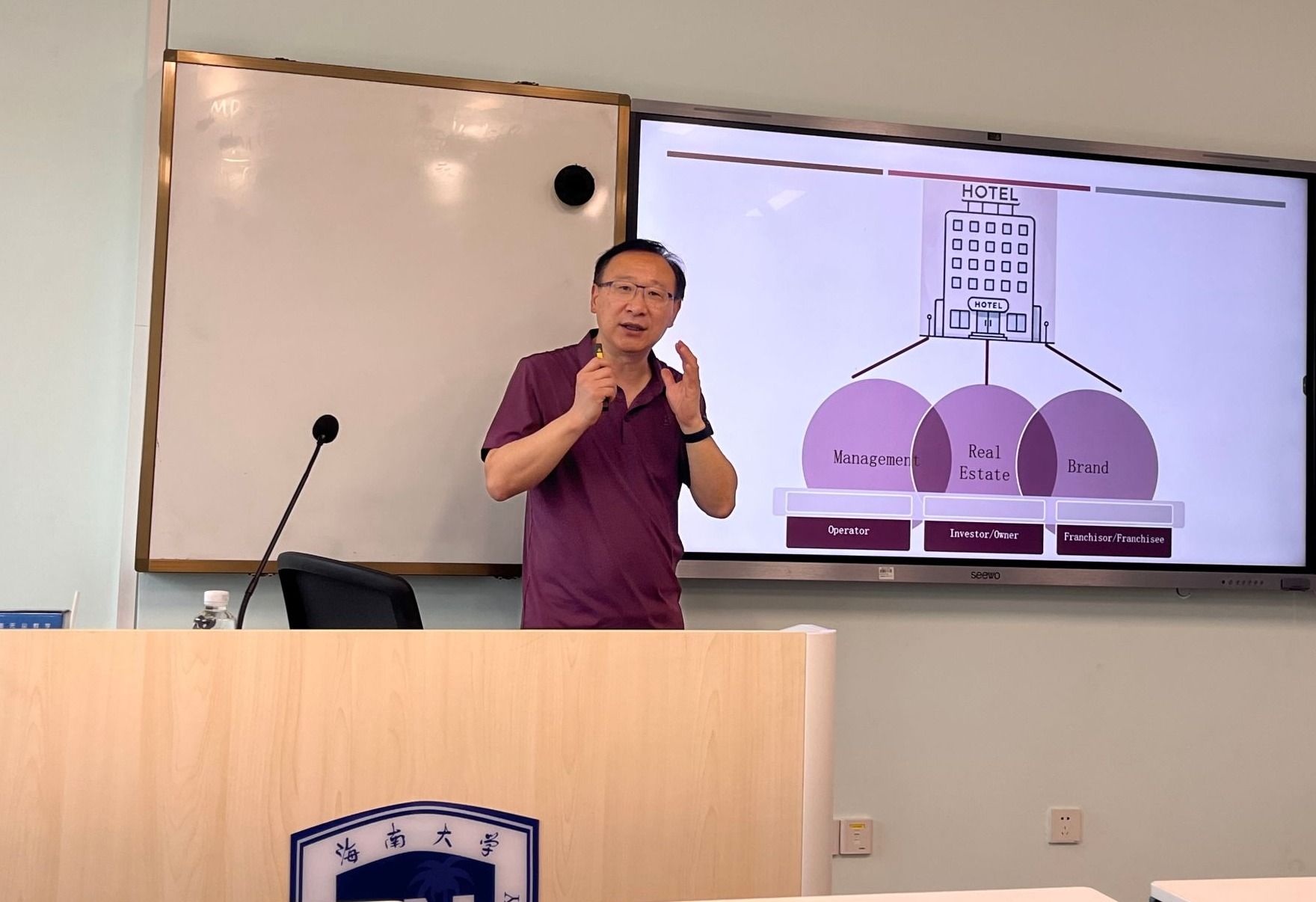 刘鹏教授首先介绍了康奈尔大学酒店管理学院的情况,强调酒店管理专业的使命在于培养未来的酒店行业领导者。在授课中,刘鹏教授深入分析了酒店行业的数字化转型和智能化服务的趋势。他指出,随着现代消费者对于服务体验的需求不断提高,酒店业需要不断创新提升运营效率和满意度。他提到“轻资产运营”模式,为酒店行业的可持续发展提供了新的视角。