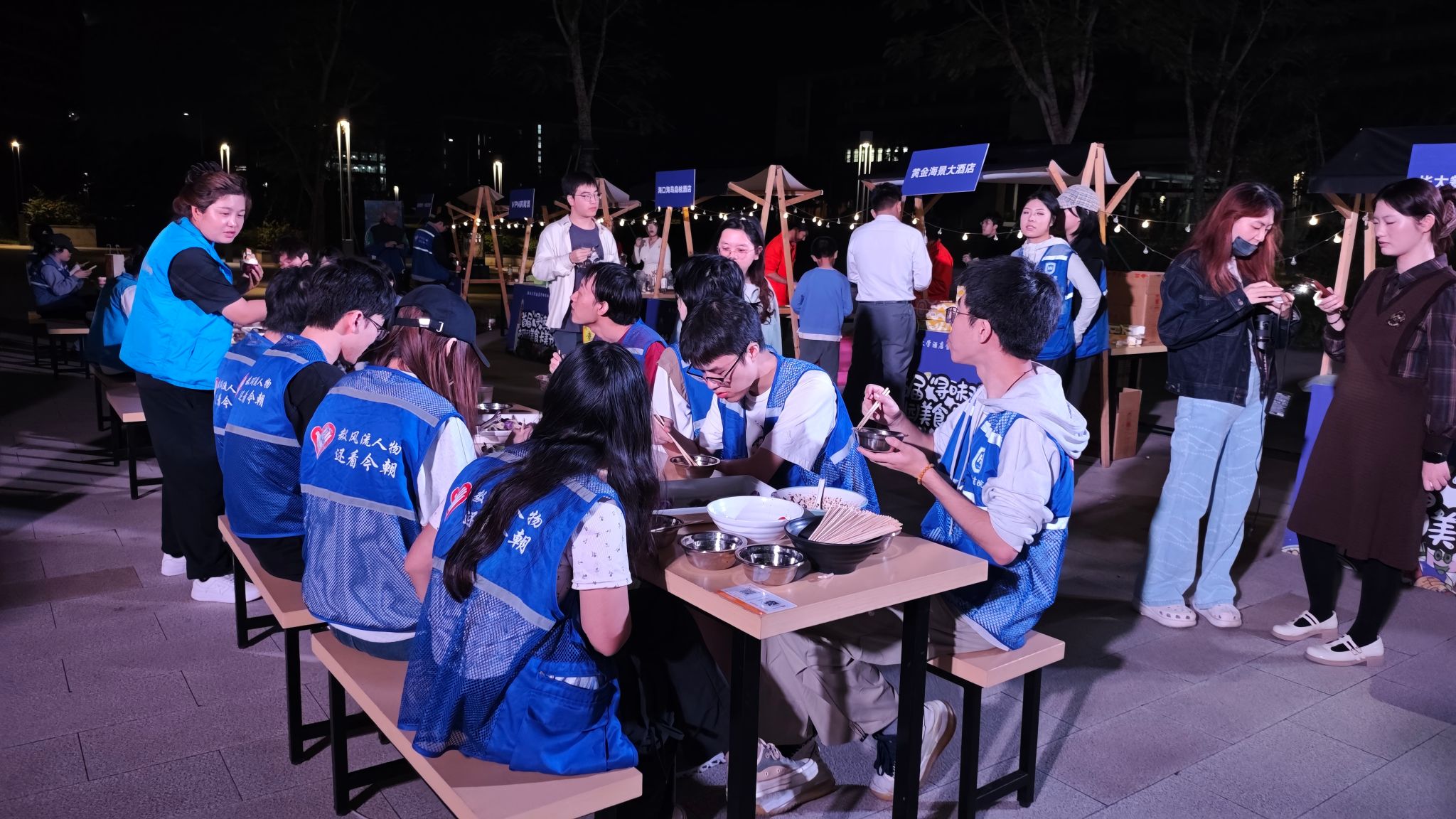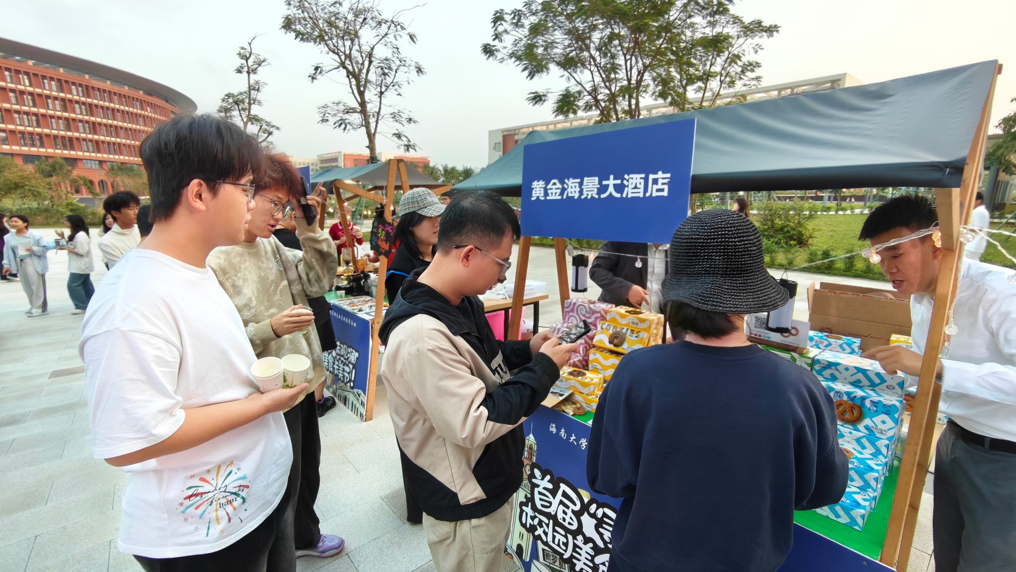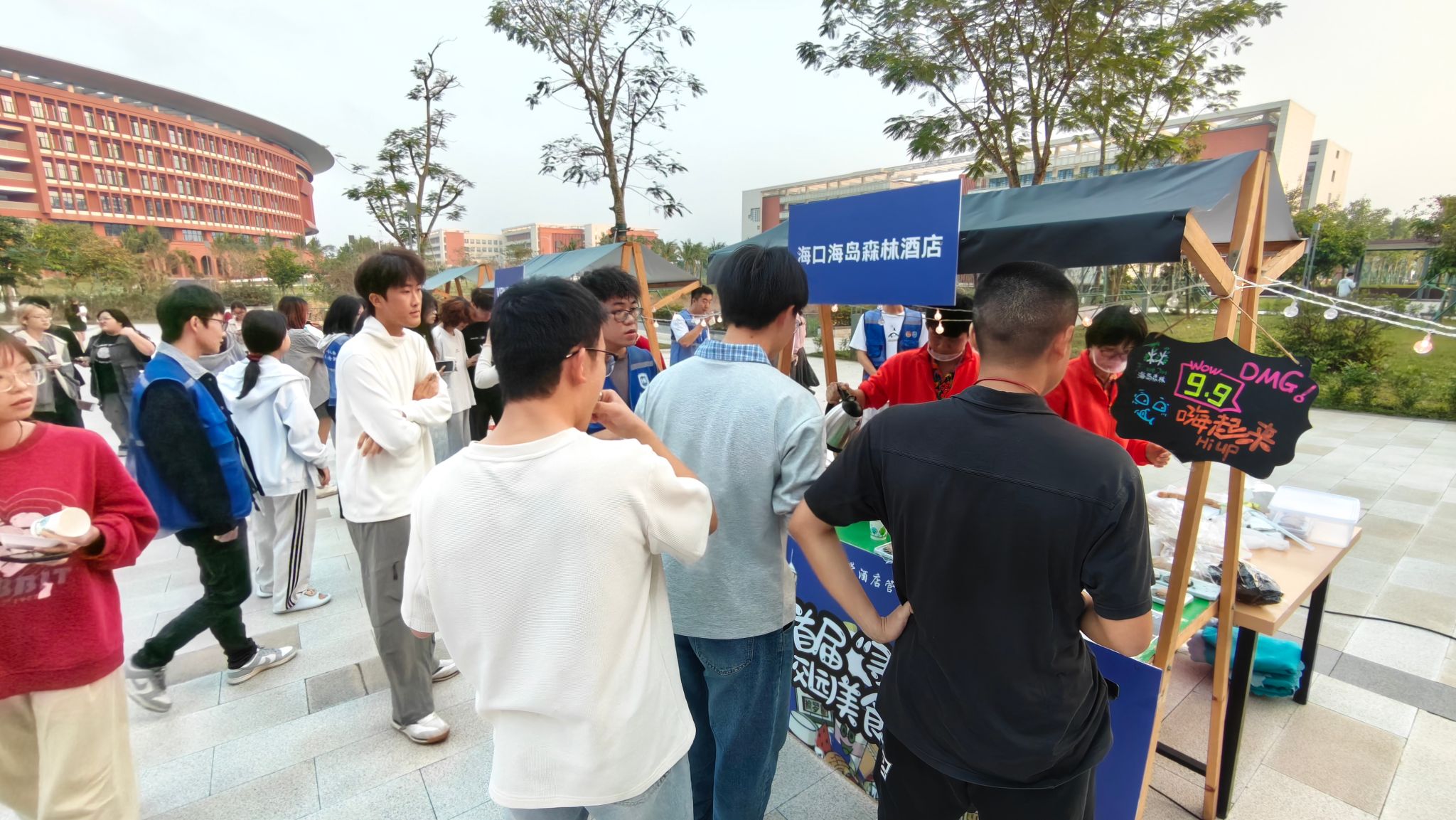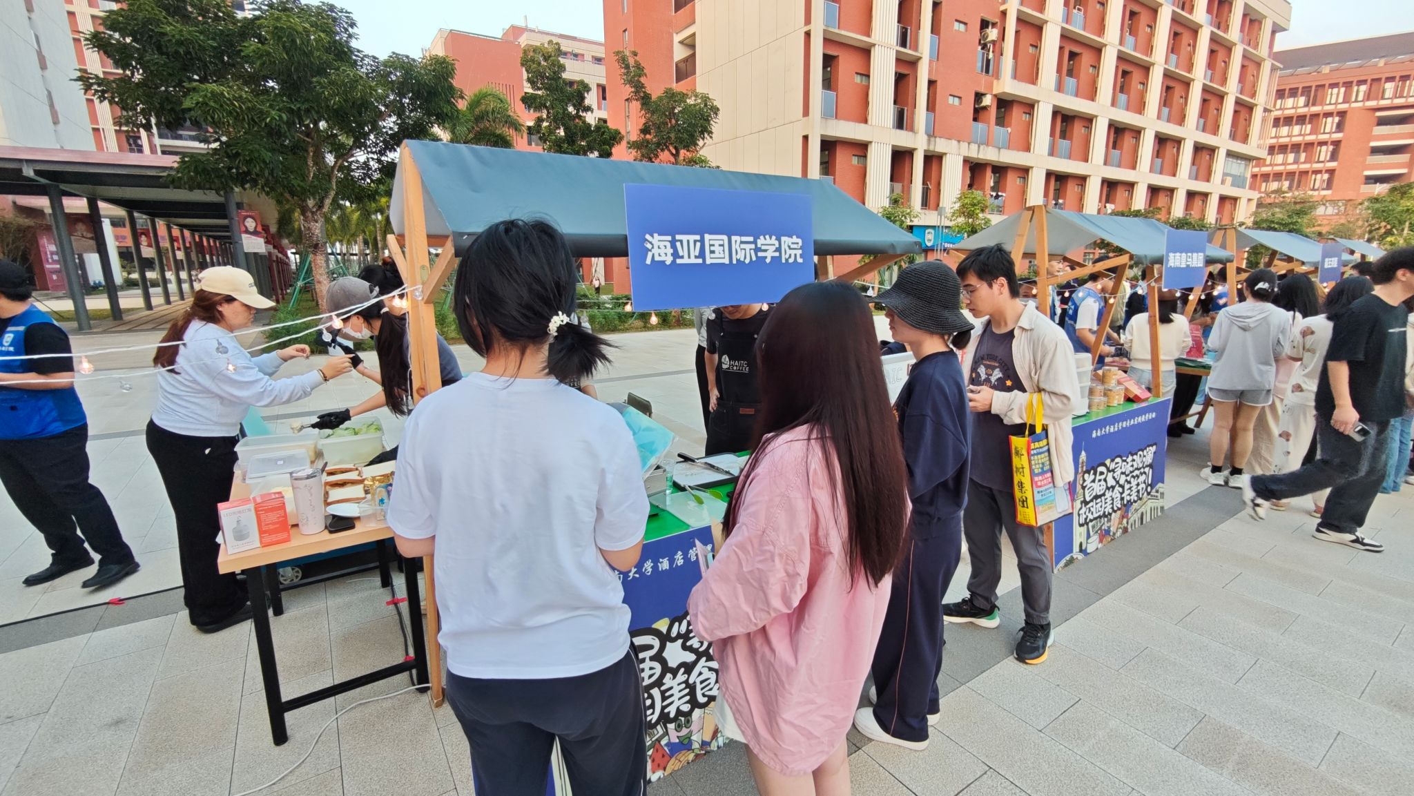 我院酒店管理专业在2025年软科中国大学专业排名中位列全国第一。专业通过世界旅游组织(UNWTO)的认证,依托海南自贸港建设背景,紧密对接区域旅游产业发展需求,强化产教融合,助力学生在旅游服务业中获得竞争优势。此次美食美酒节不仅为师生带来了丰富的文化与味觉体验,更构建了高度仿真的全流程餐饮与节事管理实战平台,让酒店管理系学生在“战中学”,将《餐饮管理》《酒水知识与品鉴》等核心课程理论转化为实践,有效锻炼了餐饮运营策划、跨部门协调、突发问题处理等综合能力。2023级酒店管理专业学生在前期完成了项目策划、小组讨论、商家邀请、宣传设计、文案撰写、场地布置等工作,为活动顺利开展筑牢基础。参展商家陆续到场后,同学们全程协助引导,高效完成展位布置衔接工作,确保各环节无缝对接。当活动接近尾声,全班同学和全体参与人员齐聚一堂,共享由观澜湖校区食堂提供的美味饺子盛宴。欢声笑语中,拉近了彼此距离,为活动增添了温馨氛围。