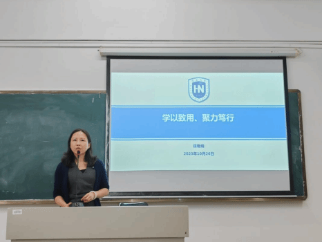 2023年10月26日晚上7:20,海南大学公共管理学院院长徐艳晴教授在城西校区8A05教室为2023级土地资源管理专业学生上了一次内容丰富的新生入学教育及导学课。课堂上,徐教授以“学以致用,聚力笃行”为主题向刚刚进入大学校园一个多月的大一新生讲解如何通过自我调整让自己尽快步入大学学习生活并彰显自我的期望。