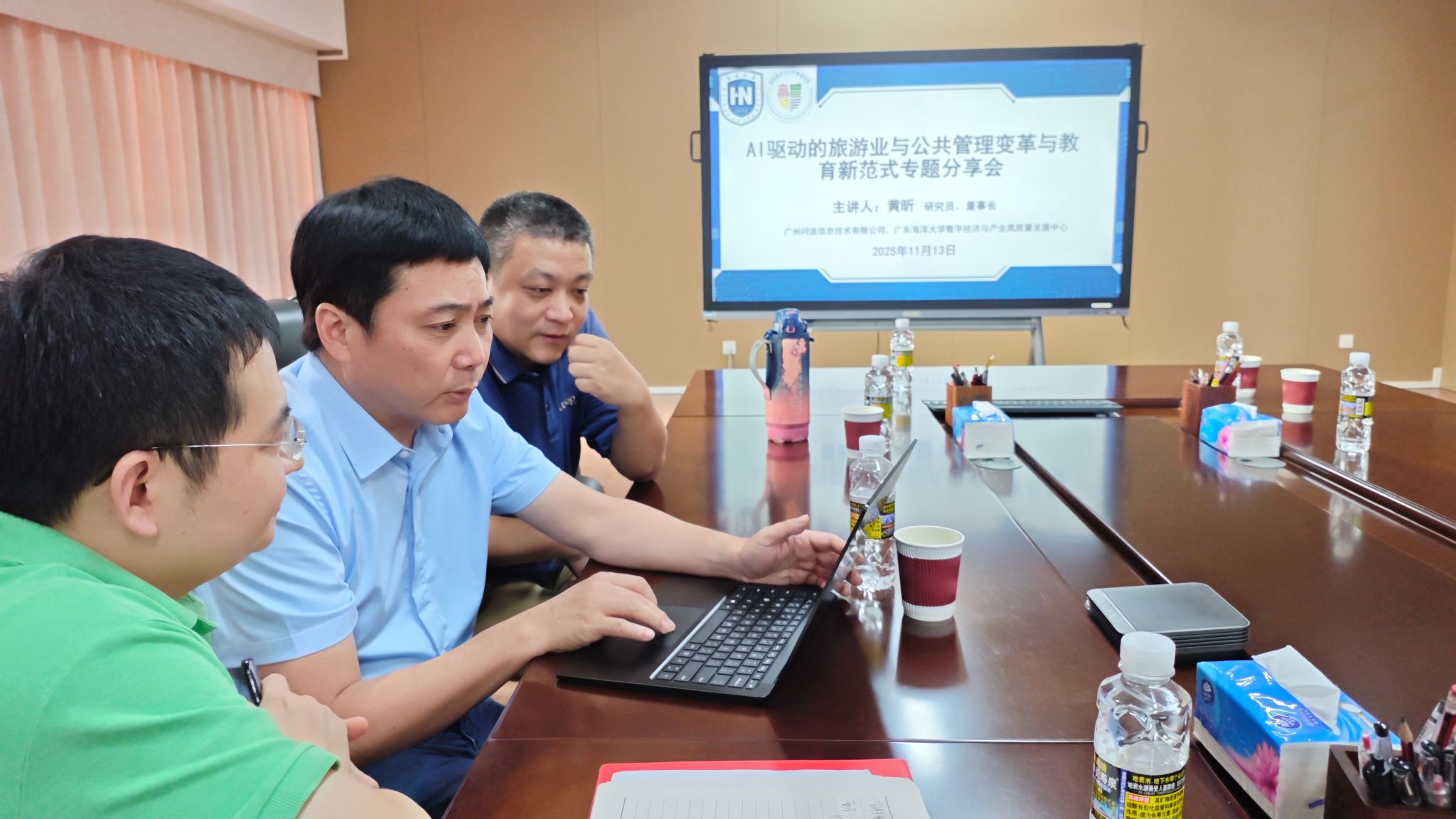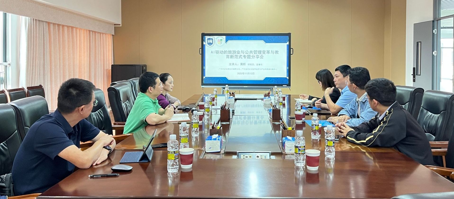 随着人工智能技术的飞速发展,其在教育上的运用展现出更多可能性。为促进教育生态全面转型,推进人工智能赋能教育全面深化,2025年11月13日下午,广州市问途信息技术有限公司董事长黄昕博士应邀莅临我院,在观澜湖校区2教4105会议室作题为“AI驱动的旅游业与公共管理变革及教育新范式”的专题分享。学院副院长何彪,旅游管理专业责任教授范士陈、李萍及学院各系办教师代表参与分享会,现场交流气氛热烈。