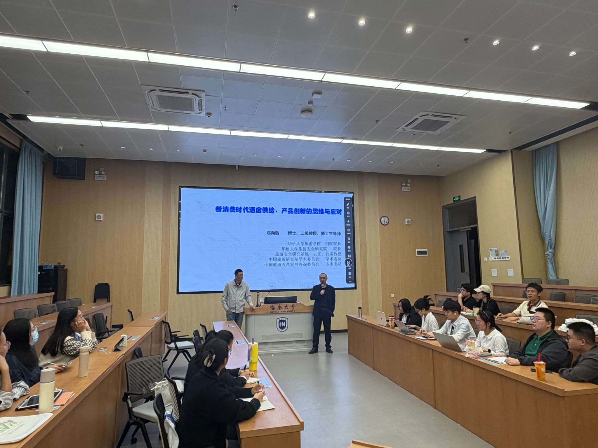 2025年12月9日上午,我院邀请华侨大学旅游学院创院院长、武夷学院旅游学院创院院长、福建省中旅饭店管理集团首席专家郑向敏教授为2023级酒店管理专业学生开展冬季小学期课堂授课。