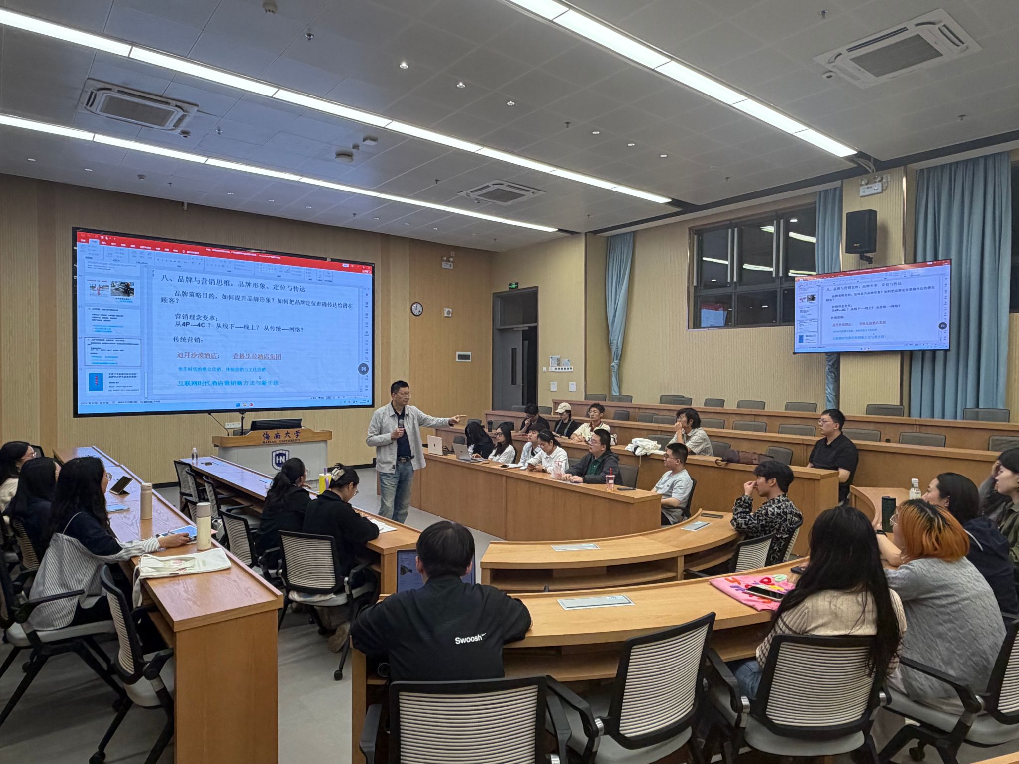当日晚上,郑向敏教授在观澜湖校区3-A101教室面向研究生开展了主题为“新消费时代酒店供给、产品创新的思维与应对”的精彩授课。郑向敏教授结合自己多年的研究和实践经历,运用大量生动形象的案例,深入浅出地分析了酒店需求与供给的三个发展阶段,详细阐述了“观念”思维影响观念产品和观念经济。从分享思维的角度,探讨了新消费时代的资源分享与体验共享,对品牌与营销思维的定位与传达。郑向敏教授的授课内容丰富、幽默风趣、旁征博引,学生们踊跃提问,赢得了在场学生的阵阵掌声。