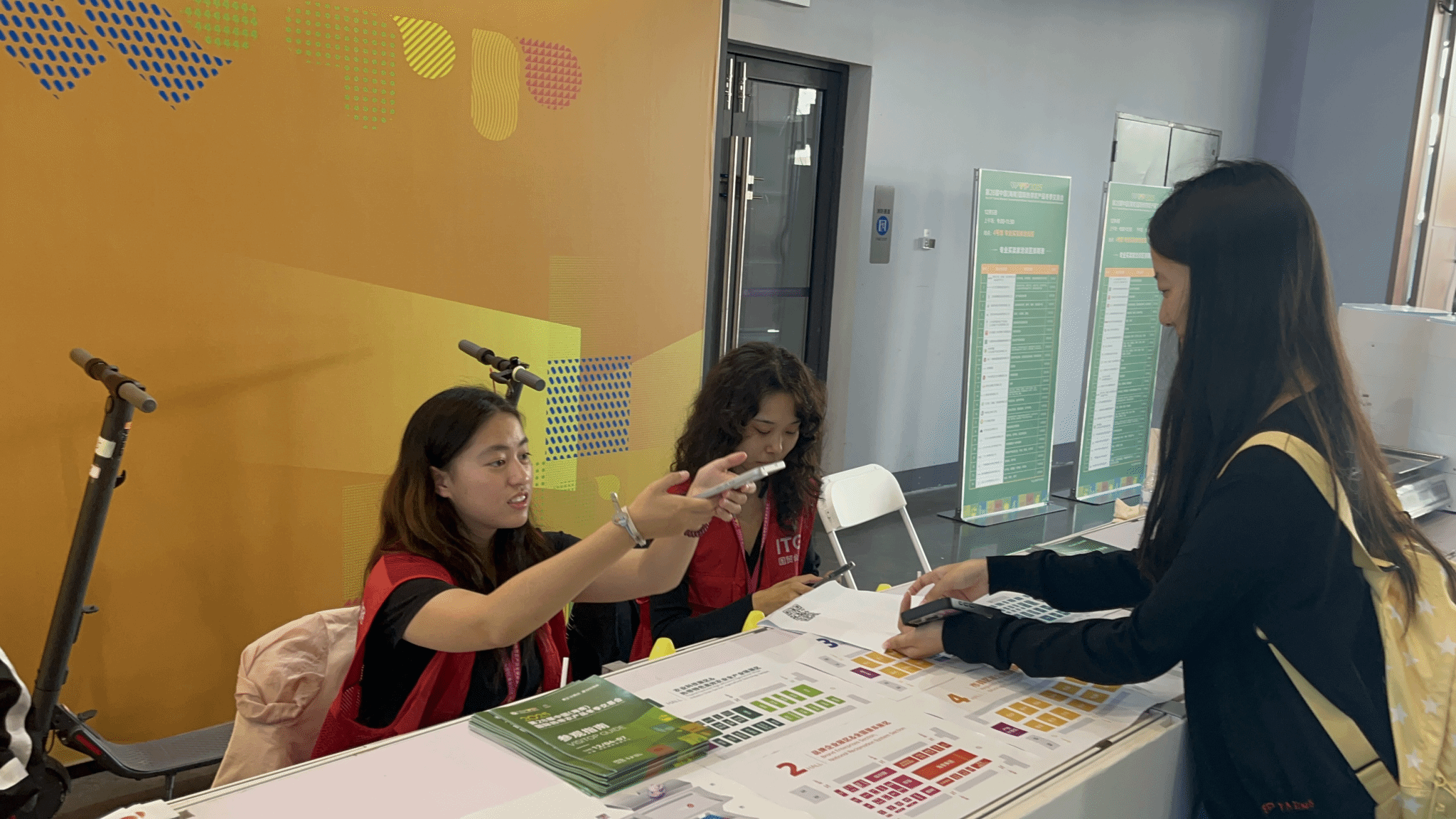 当日14时,六个调研小组分赴海南国际会展中心国际展区、智慧农业展区等关键板块,通过实地观察、深度访谈、数据收集等方式,聚焦冬交会“展、会、赛、贸”融合创新模式与运营细节,重点探究海南自贸港政策下跨境会展的运作特点及融合模式的实际成效。调研中,学生们巧用现代化工具保障信息采集的实效与真实;指导老师全程巡场指导,各小组定时汇报进展,积极开展跨组协作、共享调研发现,展现出良好的团队协作与主动探究能力。