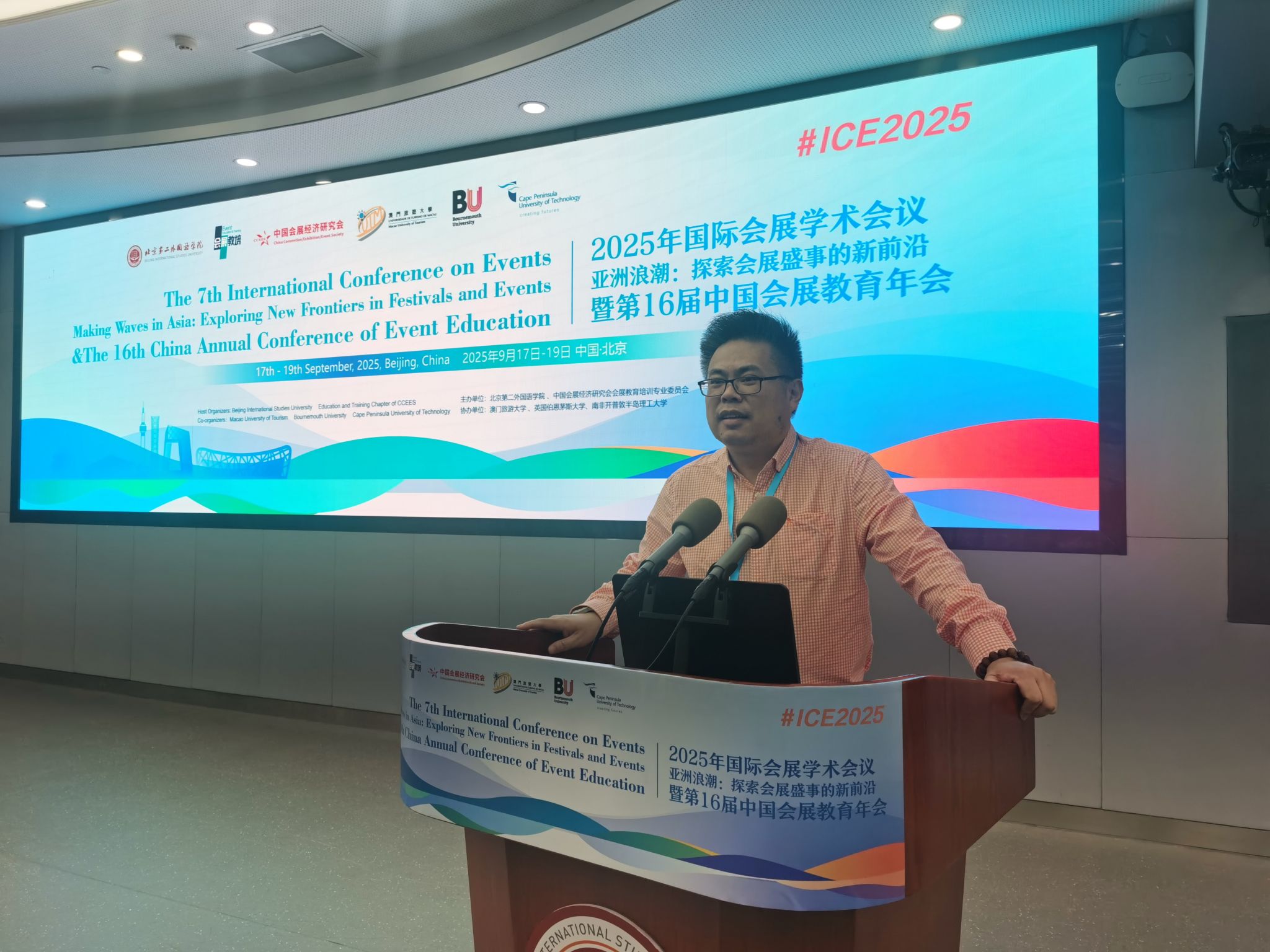 2025年9月17日至19日,以“亚洲浪潮:探索会展盛事的新前沿”为主题的2025年国际会展学术会议(ICE2025)暨第16届中国会展教育年会在北京第二外国语学院成功举办。本次会议由北京第二外国语学院与中国会展经济研究院会展教育培训专业委员会共同主办,澳门旅游大学、英国伯恩茅斯大学、南非开普敦半岛理工大学协办,汇聚了包括美国内华达大学拉斯维加斯分校、澳大利亚昆士兰大学、香港理工大学、澳门科技大学、中山大学、海南大学等来自全球10个国家和地区的数十所高校的118名会展领域专家学者和参会代表,共同探讨会展行业与教育发展的前沿议题。