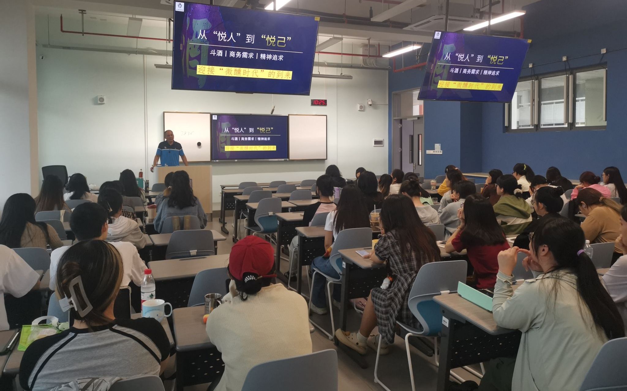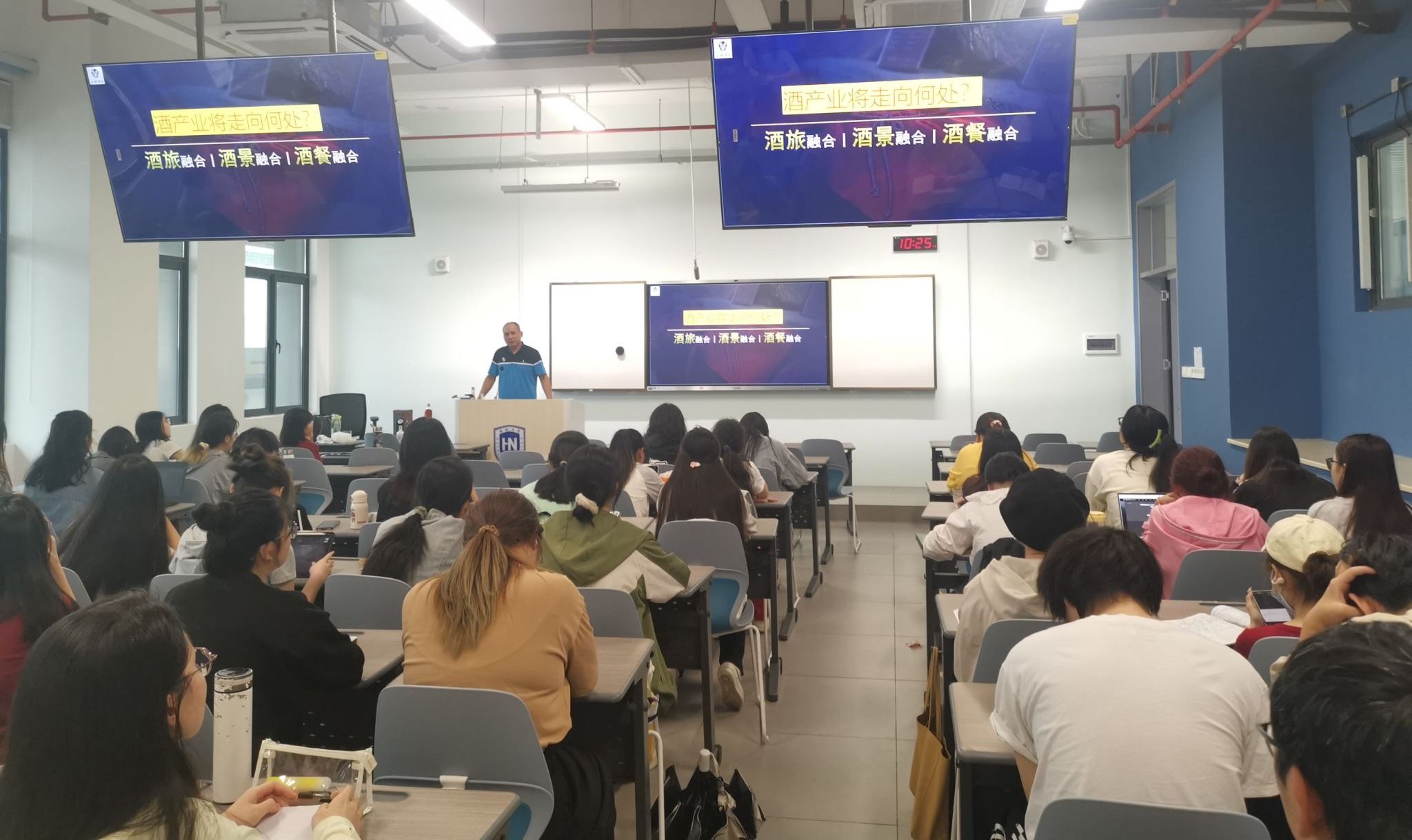 10月28日,学院“酒水知识与品鉴”本科课程邀请了2024届“旺工淡学”项目优秀毕业生、海南山栏酒庄有限公司合伙人范增友先生为同学们授课,分享他在海南传统文化、农业产业支持以及海南本土山栏酒发展方面的卓越贡献与独到见解。范增友先生对海南传统文化有深入的研究并积极推广,还通过举办文化节庆活动、支持非物质文化遗产保护等方式,有效提升了公众对海南文化独特价值的认识与尊重。