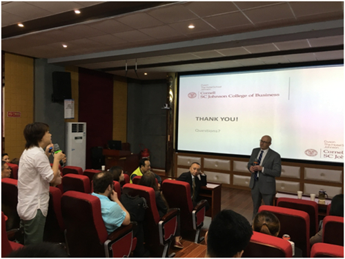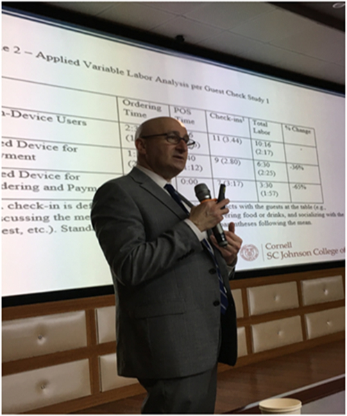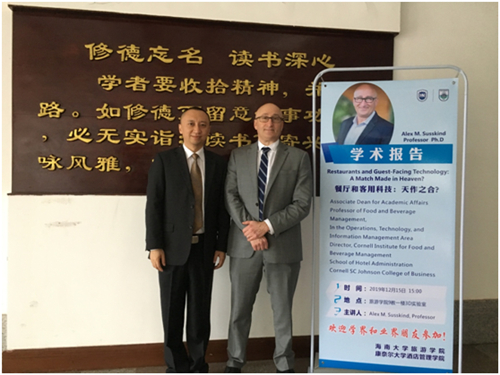 2019年12月15日15:00时,应郭强院长的邀请,美国康奈尔大学酒店管理学院副院长Alex M. Susskind教授来学院进行学术交流,为全院教师及研究生作了题为“Restaurants and Guest-Facing Technology: A Match Made in Heaven?”(餐厅与客用科技:天作之合?)的学术报告,报告由郭强院长主持,学院部分教师及研究生约100人出席并聆听了报告,现场反响热烈。