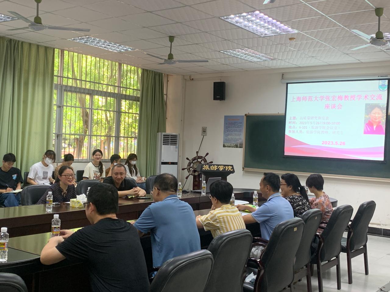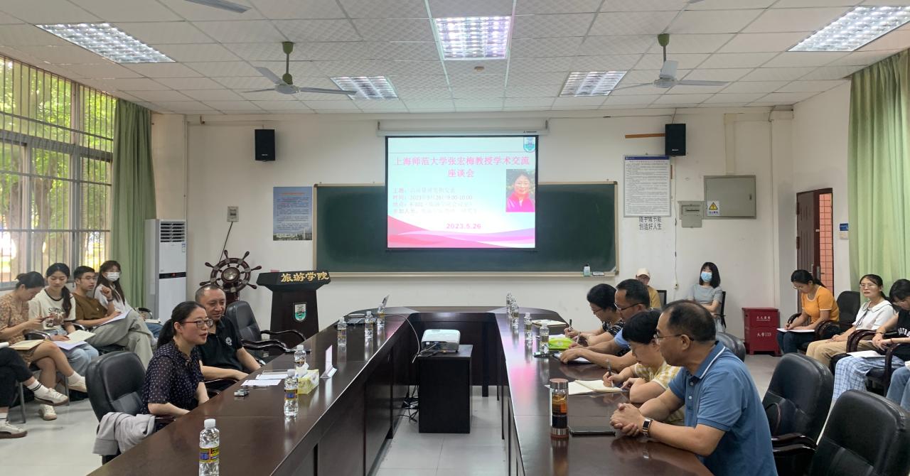 2023年5月26日上午,上海师范大学张宏梅教授莅临我院参加主题为“高质量研究和发表”的学术交流座谈会,郭强院长和师生代表50余人共同参加。