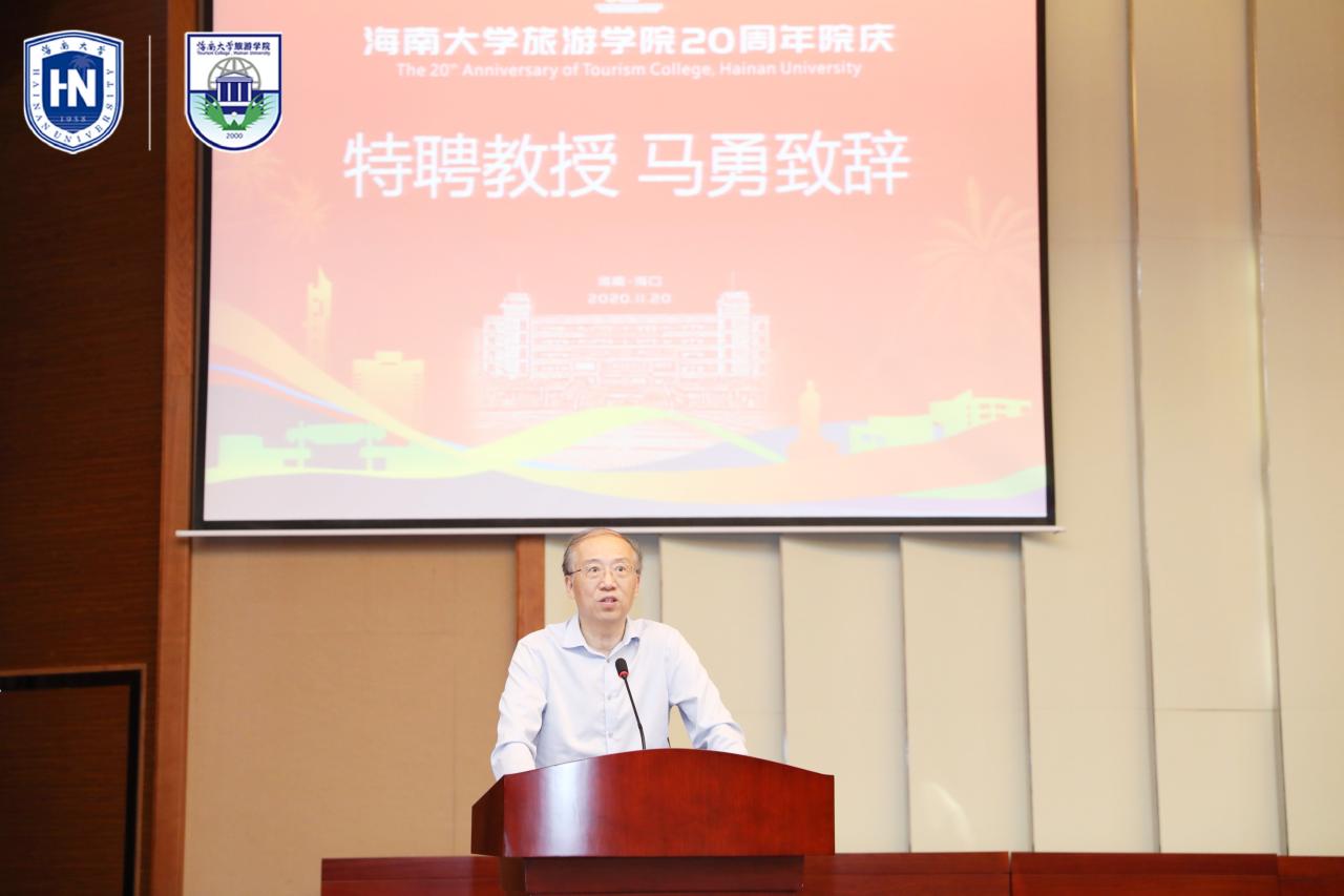 教育部旅游管理类教学指导委员会副主任、海南大学特聘教授、博士生导师马勇教授致辞说,海南大学旅游学院二十年来面向国家重大战略需求,在学科建设、人才培养、社会服务等各领域取得了令人瞩目的成就,向社会输送了数以万计的优秀人才,为海南乃至全国各地的旅游事业和产业发展作出了卓越的贡献。二十年的庆典,既是对历史的盘点,也是面向新时代新格局的起点,期待旅游学院再接再厉,再创辉煌。