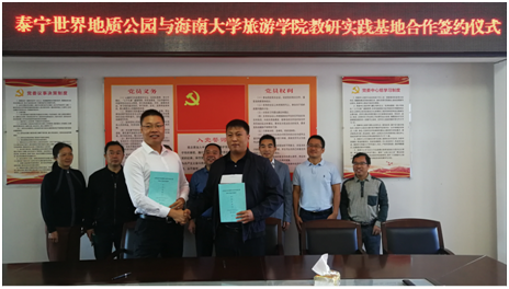 考察期间,三位教师与泰宁县旅游管委会就地学旅游、科普基地建设、旅游社区发展、高校与公园合作等议题展开了深入广泛的交流。在友好协商的基础上,双方签署了共建教学科研实习实践基地的合作协议书。这标志着我院在国内具有世界级品牌和影响力的公园建立了首个校外实习实践基地,为我院师生开展校外教学和科研活动创建了一个良好的平台。根据约定,双方今后还将联合举办地学科普、地学旅游宣传推荐、公园管理培训等活动,并合作开展世界遗产/遗迹保护、旅游开发、社区发展等方面的科研项目。