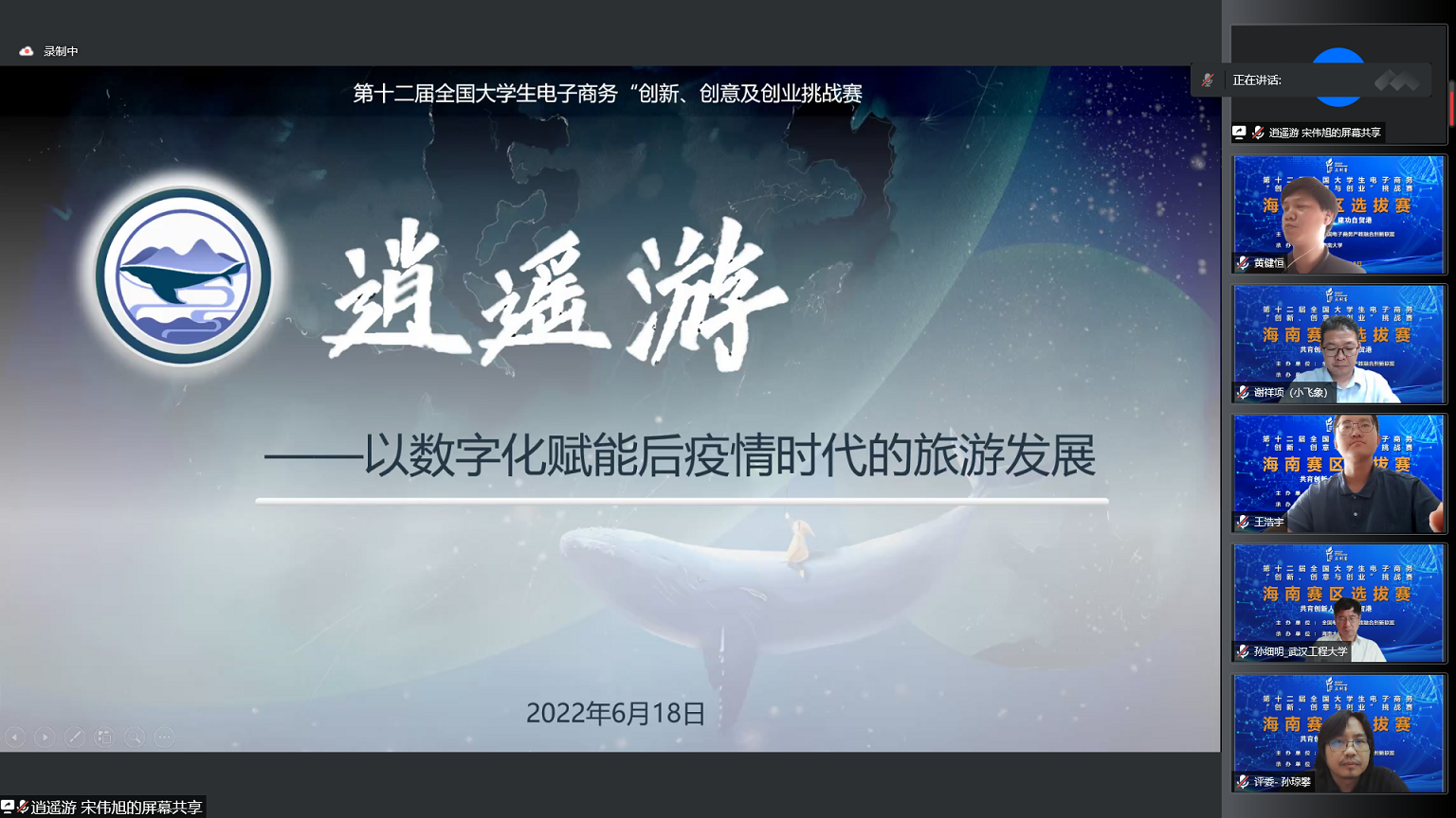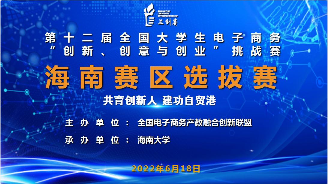 2022年6月18日,主题为“共育创新人,建功自贸港”的第十二届全国大学生电子商务“创新、创意及创业”挑战赛海南省选拔赛以腾讯会议形式在线上隆重举行。大赛由全国电子商务产教联合创新联盟和海南省教育厅主办,海南大学承办,由海南大学旅游学院具体实施,来自全省高校的76支参赛队伍参加了比赛。全国大学生电子商务“三创赛”竞组委主席李琪、海南大学教务处邱锡光、海南大学旅游学院党委书记韩力光、海南大学旅游学院院长郭强、海南省电子商务类专业教学指导委员会主任董林峰及各参赛院校相关领导、省内相关领域的高校和企业评委、参赛团队成员近300多人参加了开幕式,开幕式由省赛组委会秘书长、海南大学旅游学院副院长谢祥项主持。