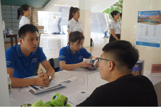 下午2点30分,2020年海南大学旅游学院酒店专场招聘会正式开始。来自旅游学院和校内兄弟学院近400名应届毕业生到现场应聘,气氛十分热烈,许多开放热门岗位的品牌酒店摊位前更是排起了长队。