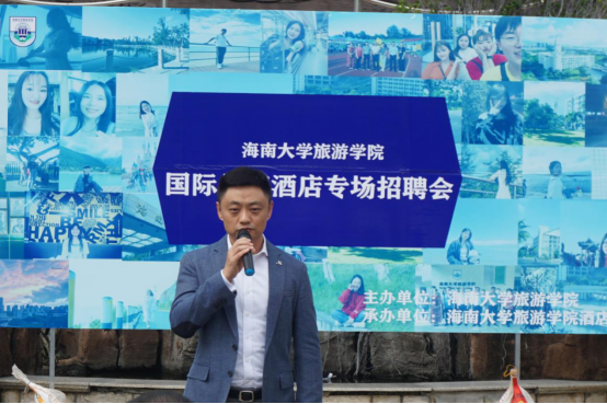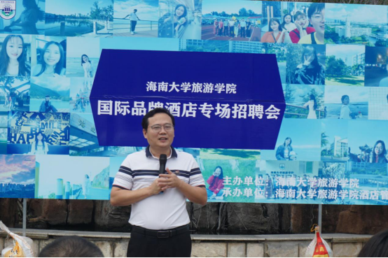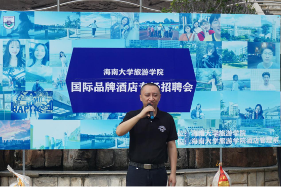 本次招聘会也荣幸地邀请了海口万豪酒店总经理张世戎先生亲临现场并致辞,张世戎先生代表出席招聘会的各酒店,从行业的独特视角,分析了当前的酒旅业发展现状,并对即将开展专业实习的大三、大四学生提出了中肯的建议。