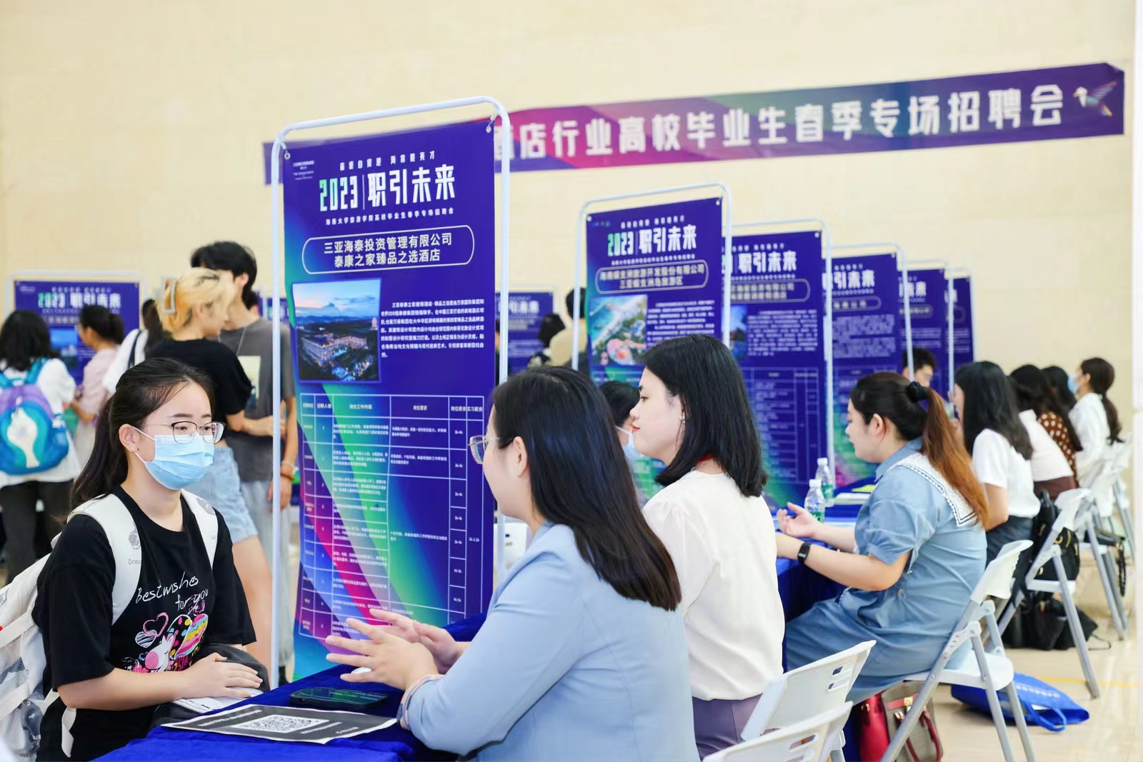 2023年4月7日上午,受旅院学院和今朝书院邀请,三亚市海棠区委组织部(区委人才发展局)和海棠区人社局在海南大学思源学堂举办旅游酒店行业人才专场招聘会。