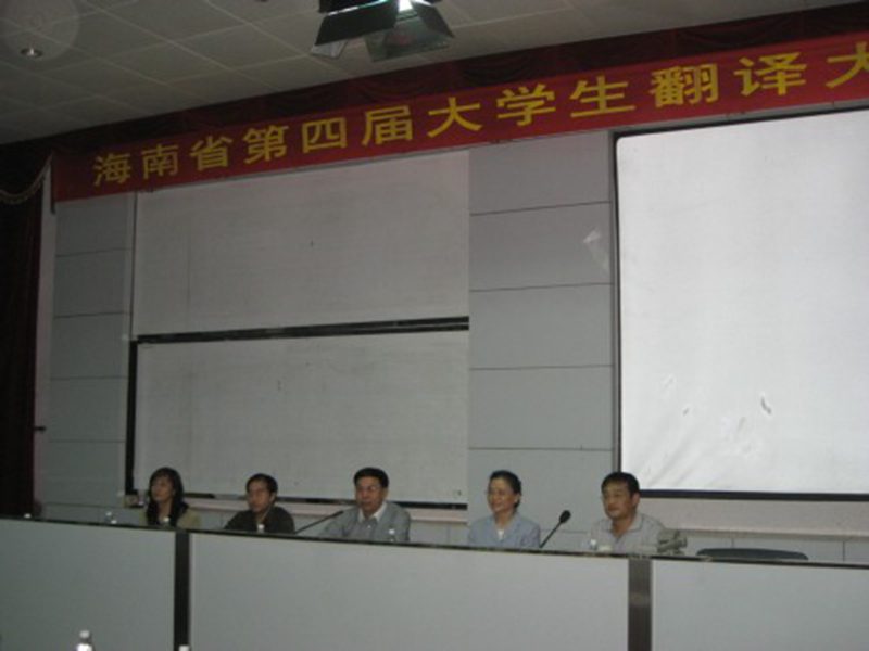 2009年4月26日,由海南省翻译协会主办、海南软件职业技术学院承办海南省第四届大学生翻译大赛决赛在海南软件职业技术学院成功举行。来自省内十一所高校的九十名优秀学生参加了本次翻译大赛。海南省翻译协会会长、海南大学旅游学院应用外语系系主任冯源教授、海南软件职业技术学院副院长桂占吉教授,海南软件职业技术学院公共教学部主任、海南省翻译协会副会长尚志强教授出席了开幕式,并发表了热情洋溢的讲话。大赛开幕式尚志强教授主持。