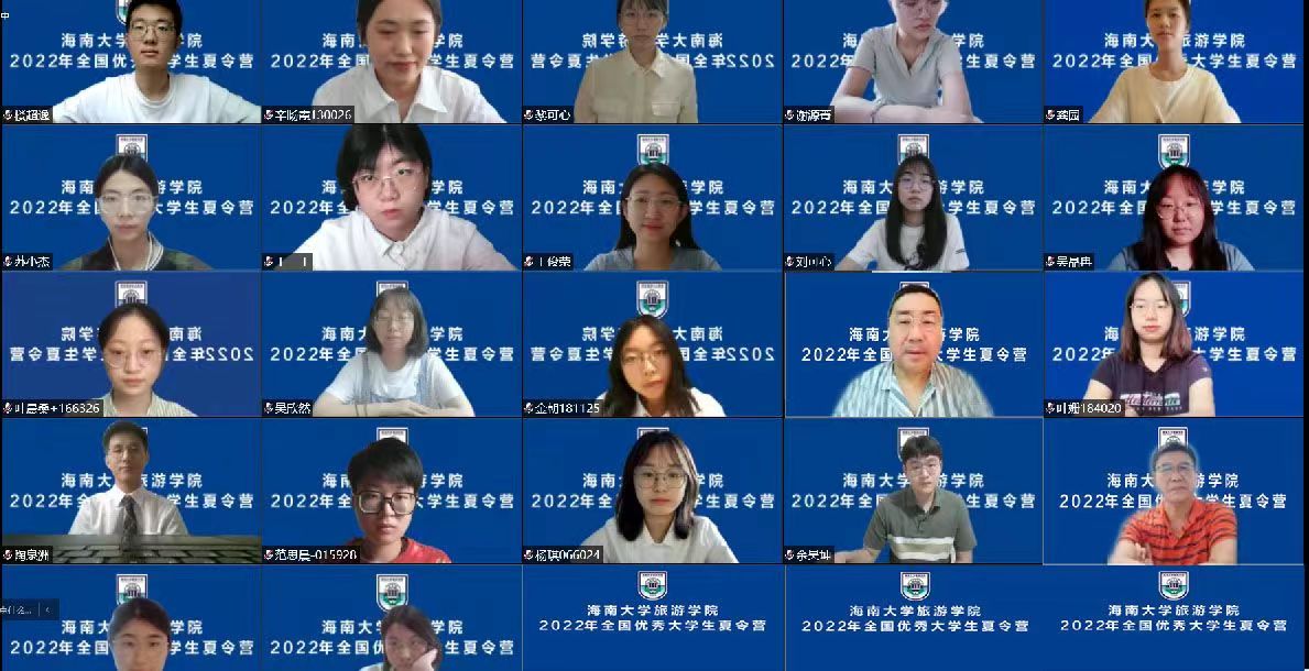 7月4日至5日,海南大学旅游学院2022年全国优秀大学生夏令营顺利举行。受疫情影响,我院今年的夏令营活动采用“网络远程”线上方式举行,分别吸引到了暨南大学、北京林业大学、上海师范大学、贵州大学等全国四十多所高校76名优秀学子报名,经过遴选的28名优秀本科生参加了此次夏令营。