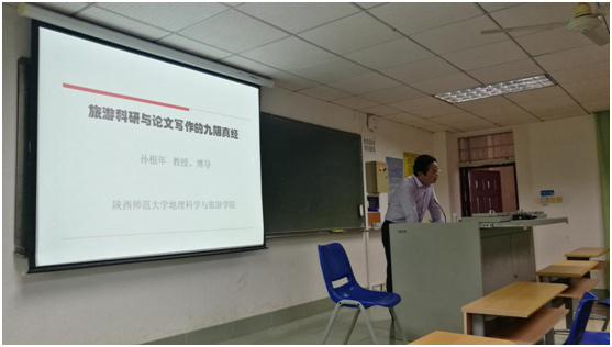 应旅游学院地理科学与规划系及MTA教育中心邀请,2019年10月31日下午,陕西师范大学地理科学与旅游学院博士生导师孙根年教授为我院教师与研究生作了题为“旅游科研与论文写作的九阴真经”的学术报告,我院教师、博士与硕士研究生共计40余人参加了此次学术交流活动。