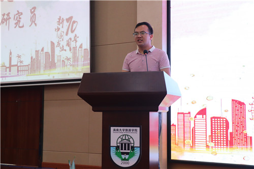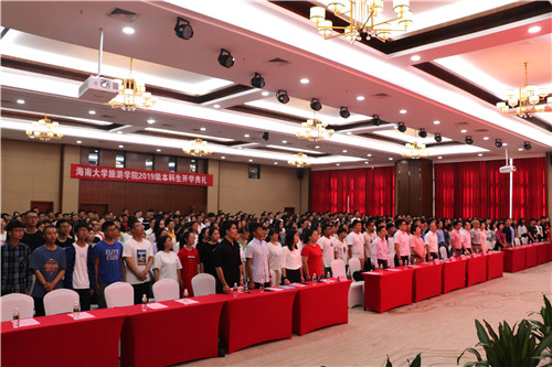 恰逢新中国成立70周年,2019年9月12日上午八点四十五分,海南大学旅游学院2019级新生开学典礼在中日友好交流中心三楼会议厅正式开幕。出席本次典礼的嘉宾有:旅游学院院长郭强,副院长何彪、谢祥项,旅游管理系胥兴安教授,辅导员老师以及院友黄克己副研究员等。
