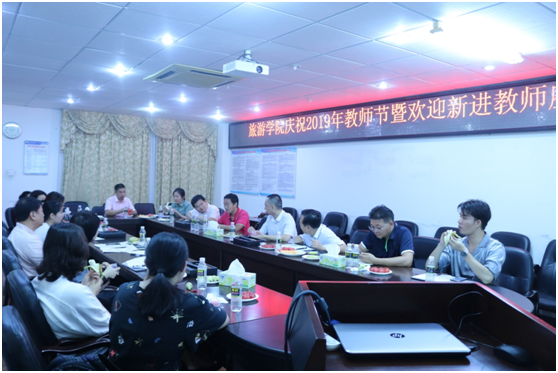 2019年9月9日上午,在第35个教师节即将来临之际,旅游学院召开庆祝教师节暨迎接新引进教师座谈会。出席会议的有:院长郭强,党委副书记(主持工作)韩力光,副院长何彪、侯佩旭、谢祥项,新进教师代表:韩溦、程晓曦、刘雪莲、陈艳华、陈天一、付莉娟、袁静馨、邓虹、文金顺、尹鸿文,以及老教师代表和各部门负责人共20多人参加了会议。