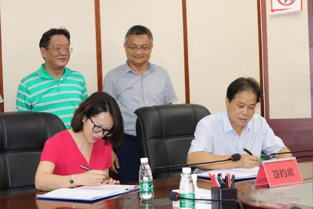 海南大学旅游学院院长韦开蕾(左二)与东方市旅游委签订合作协议