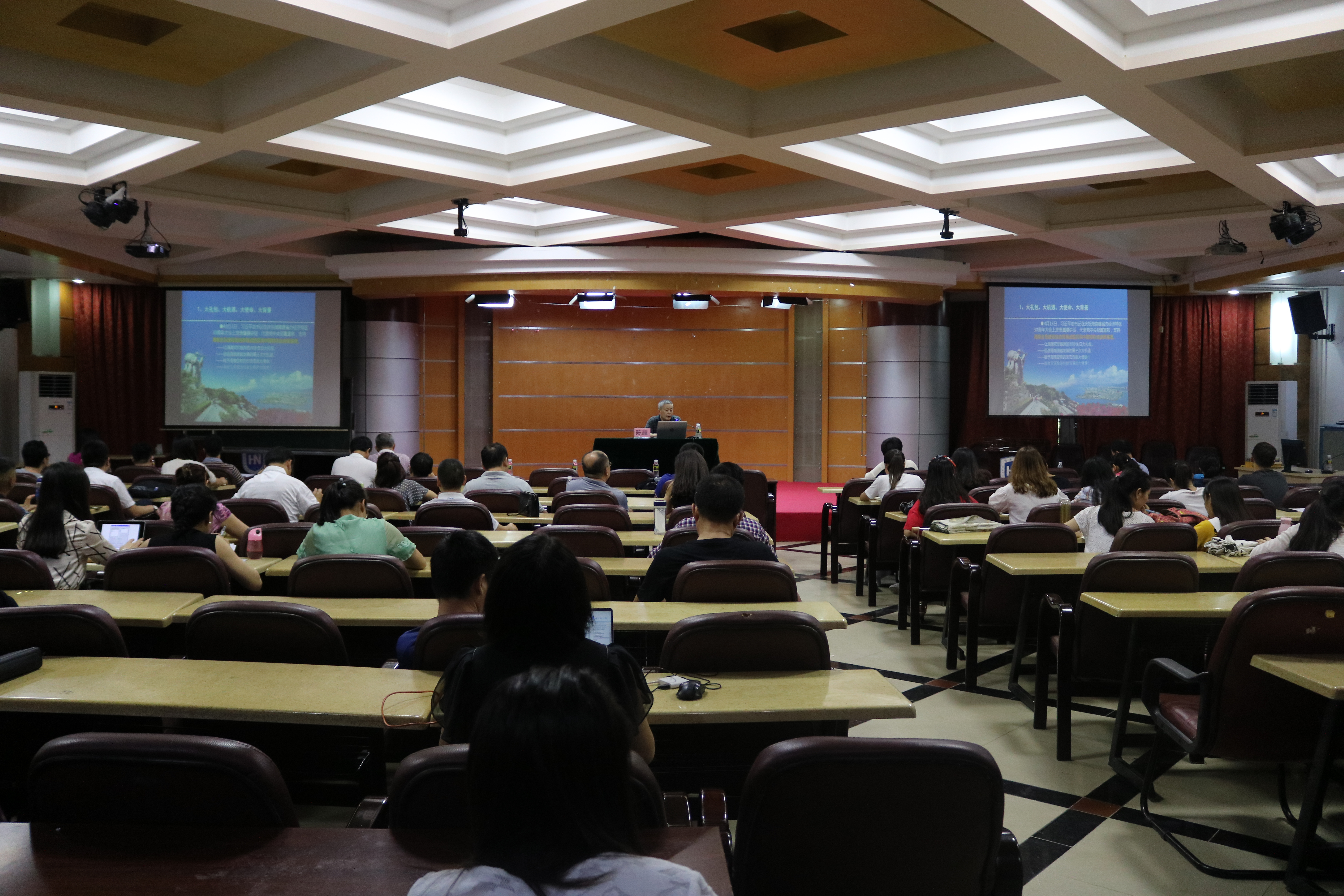 2018年9月25日下午,受学院邀请,原海南省社科联副主席、中国海洋学会副会长陈耀教授来学院做了题为“创新发展海南国际旅游消费中心”的专题讲座。参与此次专题讲座的有学院全体教职员工和研究生。