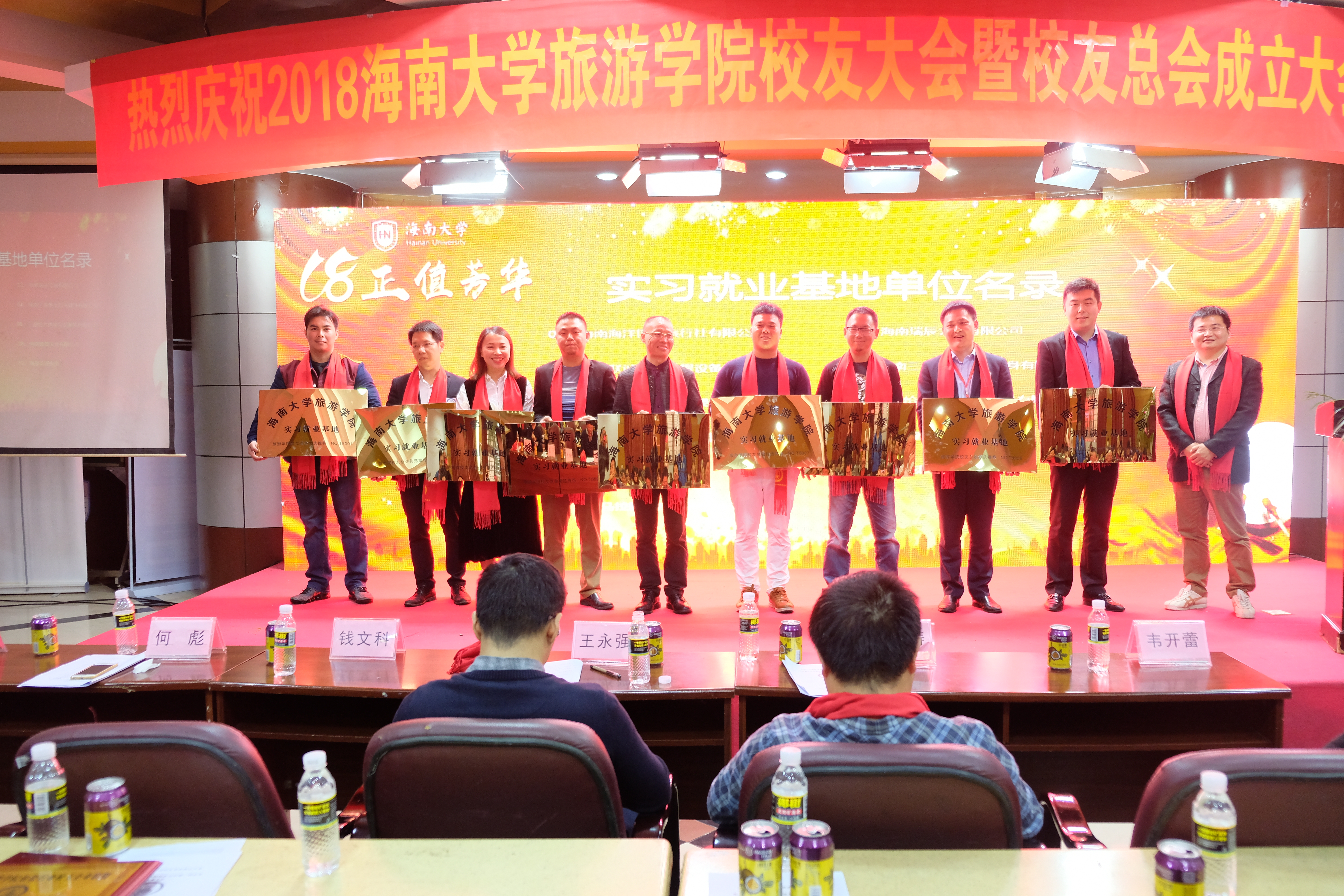 最后,大会进行了旅游行业校友企业联盟成立仪式和实习就业基地授牌仪式。