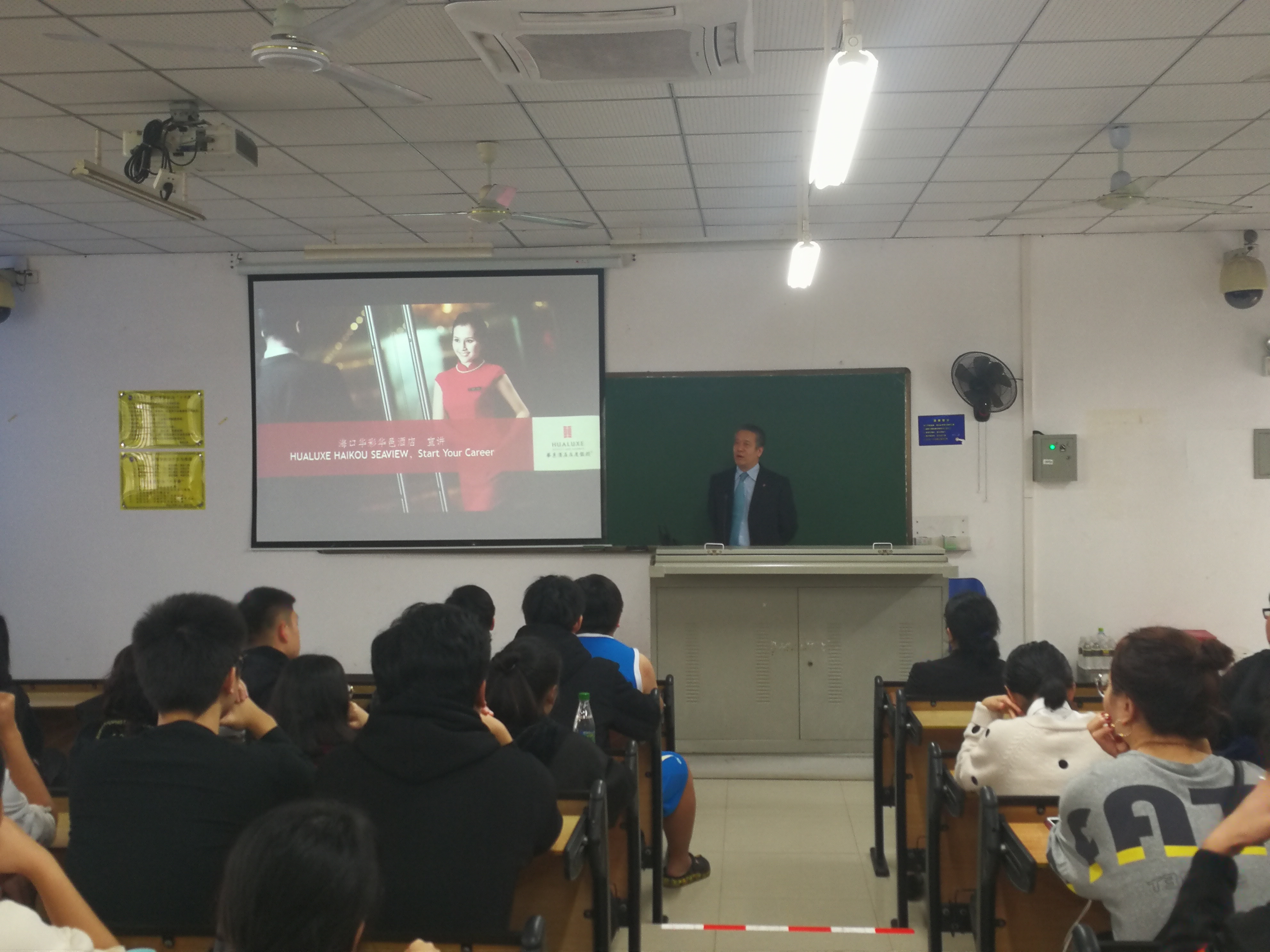 2019年1月10日下午,洲际酒店集团海口华邑酒店总经理刘振山先生应邀为海南大学17级酒店管理专业学生做题目为“酒店人成功的要素和职业发展”的冬季小学期讲座,本次讲座由酒店管理系主任杜肖寒老师主持。刘振山先生现任海口华彩华邑酒店总经理,MBA学位。曾就读于德国巴伐利亚州酒店管理学院。1984年加入洲际酒店集团在中国的第一家酒店-丽都假日酒店开启了他的职业生涯。先后任宜昌万达皇冠假日酒店、襄阳万达皇冠假日酒店,西双版纳洲际度假酒店总经理一职。酒店生涯中,由于出色完成洲际集团十项致胜指标包括酒店财务业绩指标和客人满意度等指标荣获洲际酒店集团酒店运营的‘金龙奖’。任职西双版纳洲际度假酒店近四年时间内,客户满意度在洲际品牌中一直保持第一名的成绩。