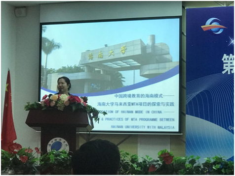 会议开幕式于26日上午举行。开幕式上,部分国内外知名高校代表作主题发言。我院周红霞老师代表海南大学旅游学院上台发言,作了题为《中国跨境教育的海南模式----海南大学马来西亚MTA项目的探索与实践》的英文演讲。在发言中,周红霞老师简单介绍了海南大学及旅游学院的基本情况,并向参会人员介绍了海南大学与马来西亚南方大学学院合作举办的“旅游管理硕士(MTA)专业学位项目”的意义、发展历程和现状。英文演讲在现场引起了很大反响,吸引了众多国内外参会人员的关注和兴趣。其中马来西亚精英大学、泰莱大学的参会领导明确表示,愿意与旅游学院开展后续合作。会后两位老师还受邀参加了主办单位举办的晚宴,与参会领导及外宾深入探讨了跨境国际教育的趋势及海南大学马来西亚MTA项目的发展前景。