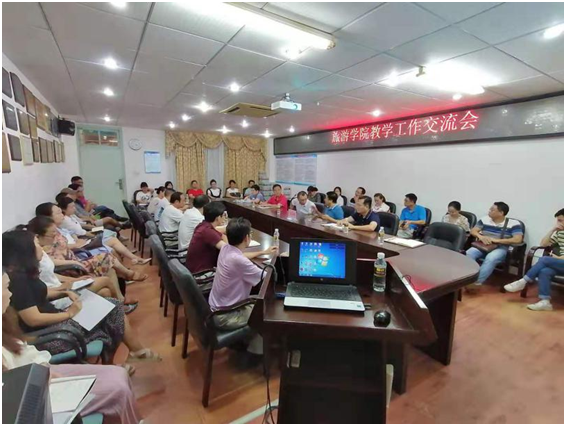2019年7月9日下午15:00-16:25,海南大学教务处处长张云阁教授应邀在旅游学院8-205会议室,就一流本科建设的相关工作与学院教师进行了专题座谈交流。交流会由院长郭强教授主持召开,旅游学院党委副书记(主持工作)韩力光、副院长何彪、侯佩旭、谢祥项,以及各系主任、各专业负责人、院级督导员、行政各办主任以及没有监考任务的教师共38人参加了交流会。