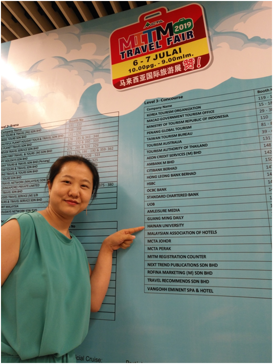 2019年7月3日至9日,在我院周红霞老师的带领下,海南大学中马MTA项目成功亮相马来西亚槟城国际旅游展,周红霞老师期间还访问了马来西亚南方大学学院及光明日报、星洲日报、威省海南会馆、马来西亚海联青等机构,圆满完成了中马MTA项目2019级学生的此次授课任务及槟城教学点的筹建和项目宣传推广工作。