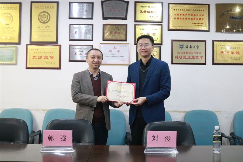郭强院长给刘俊教授颁发了“客座教授”聘书,并合影留念。学术交流活动在愉悦的氛围中结束。